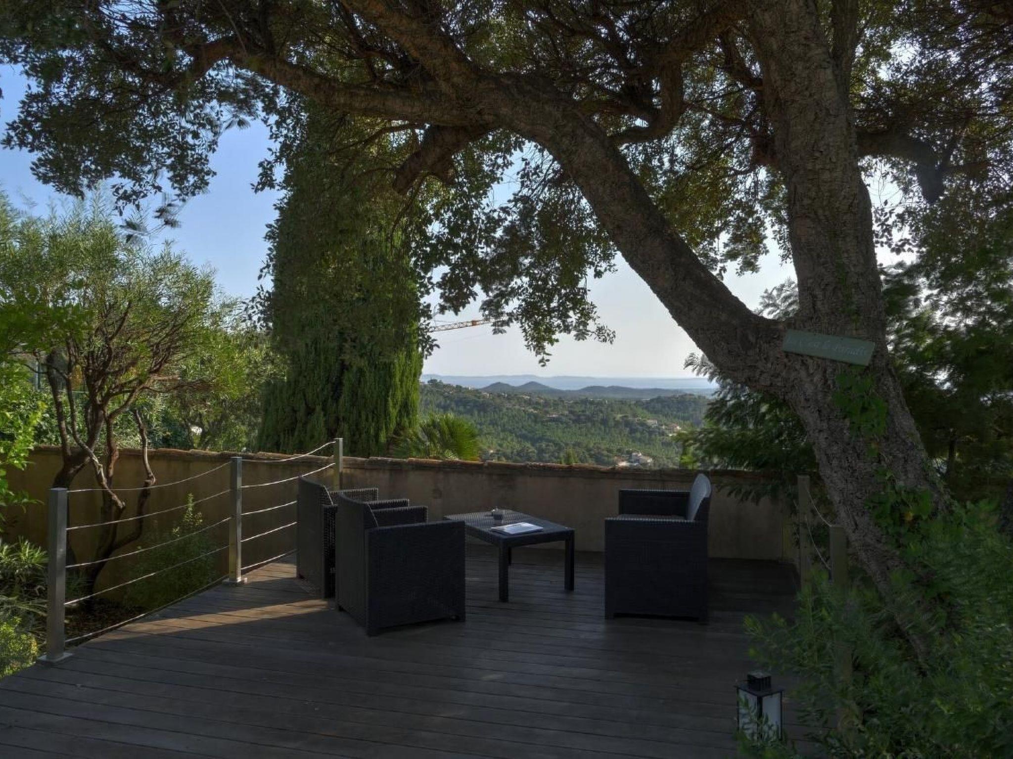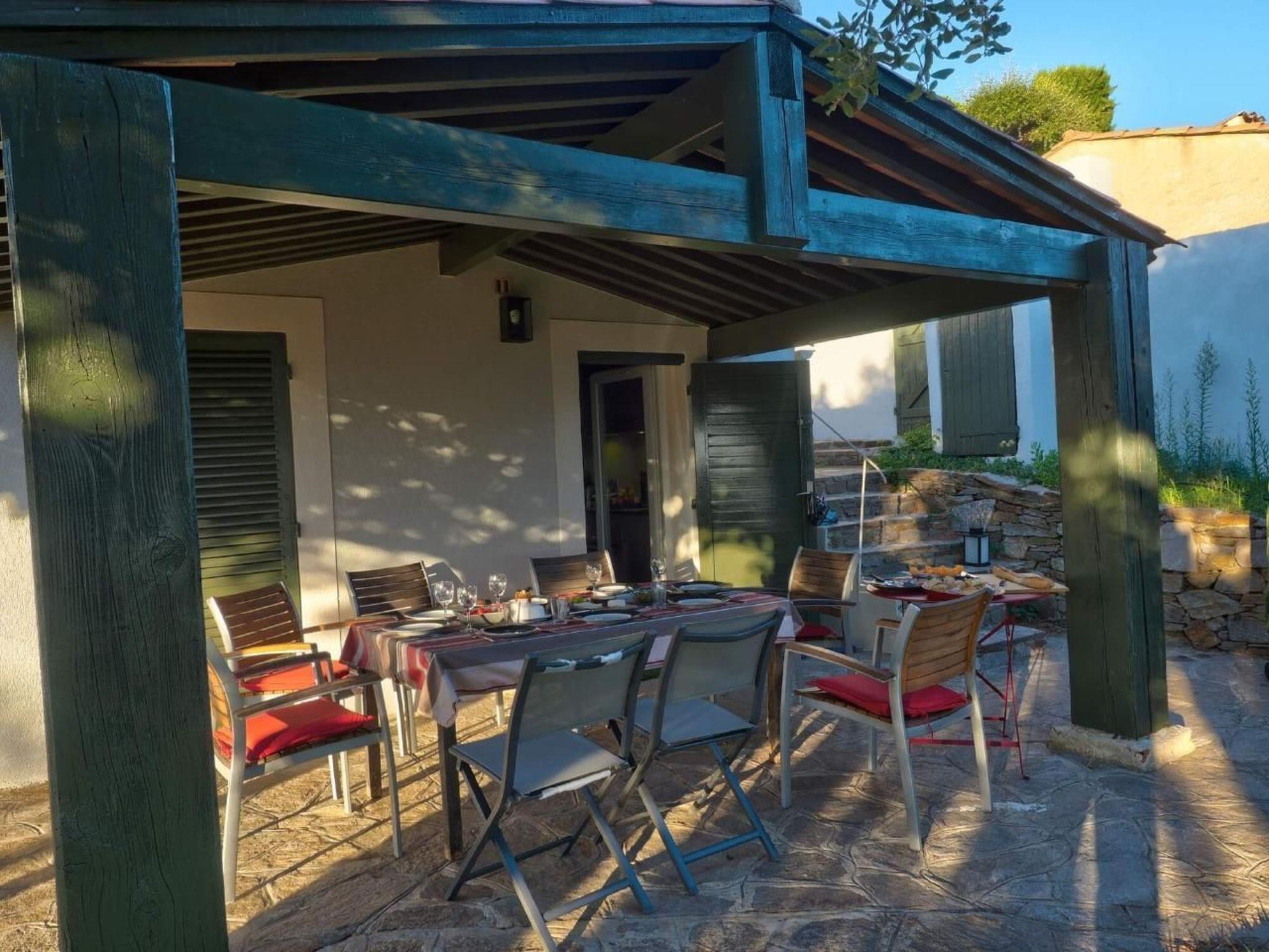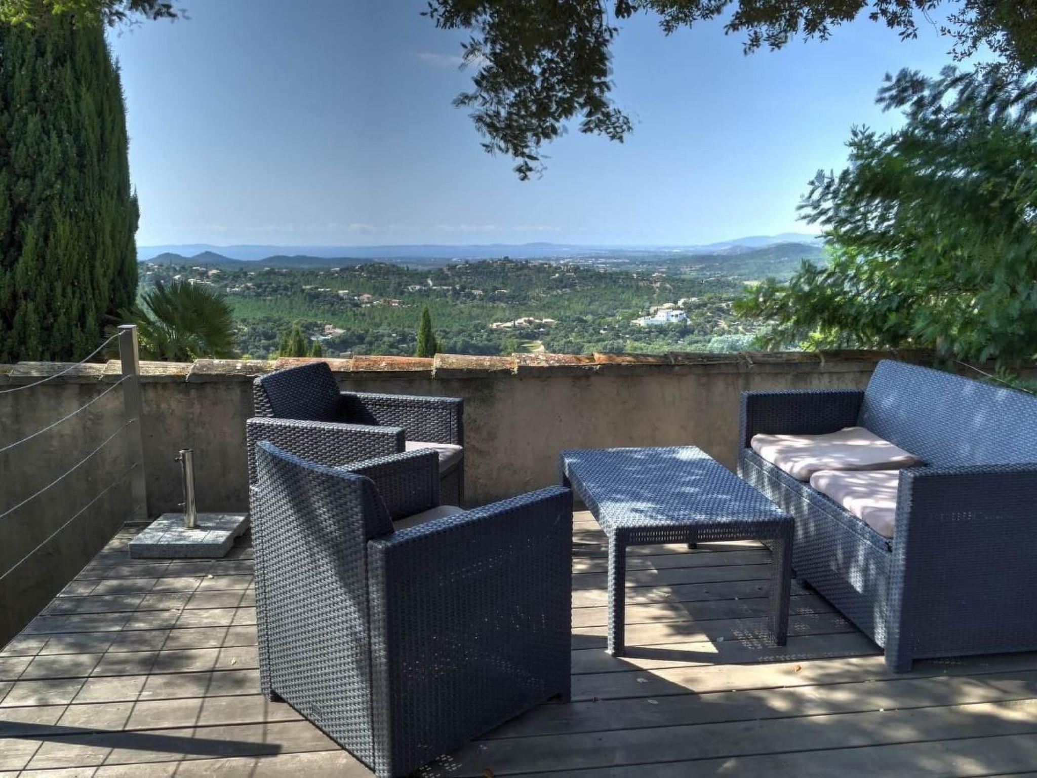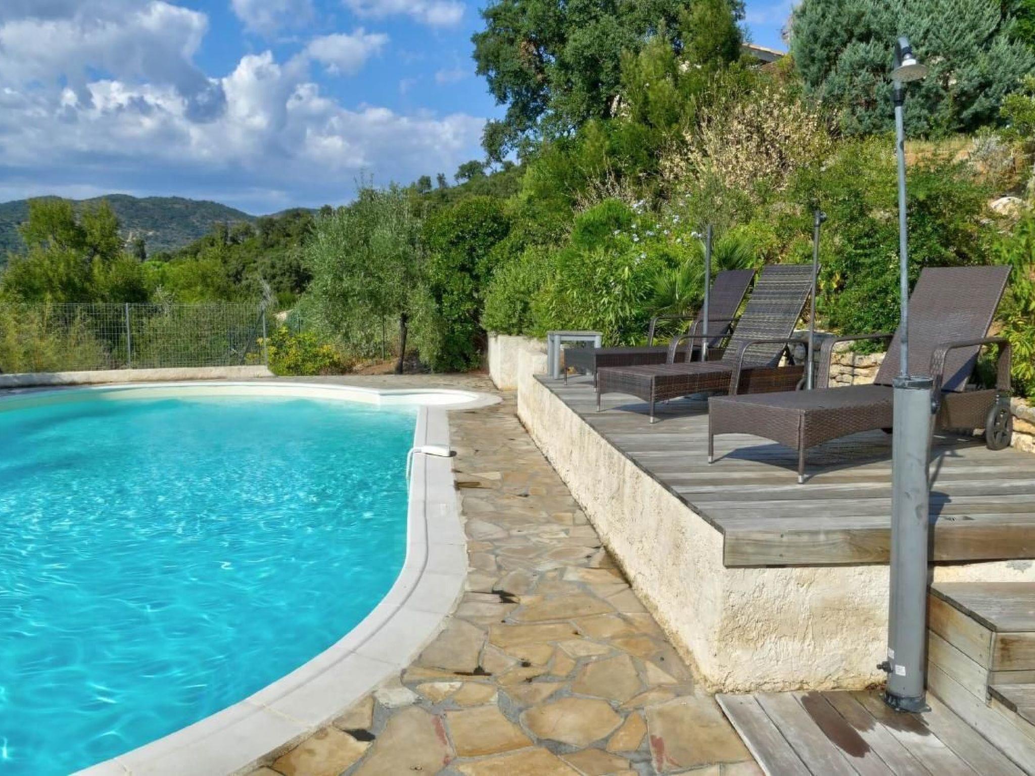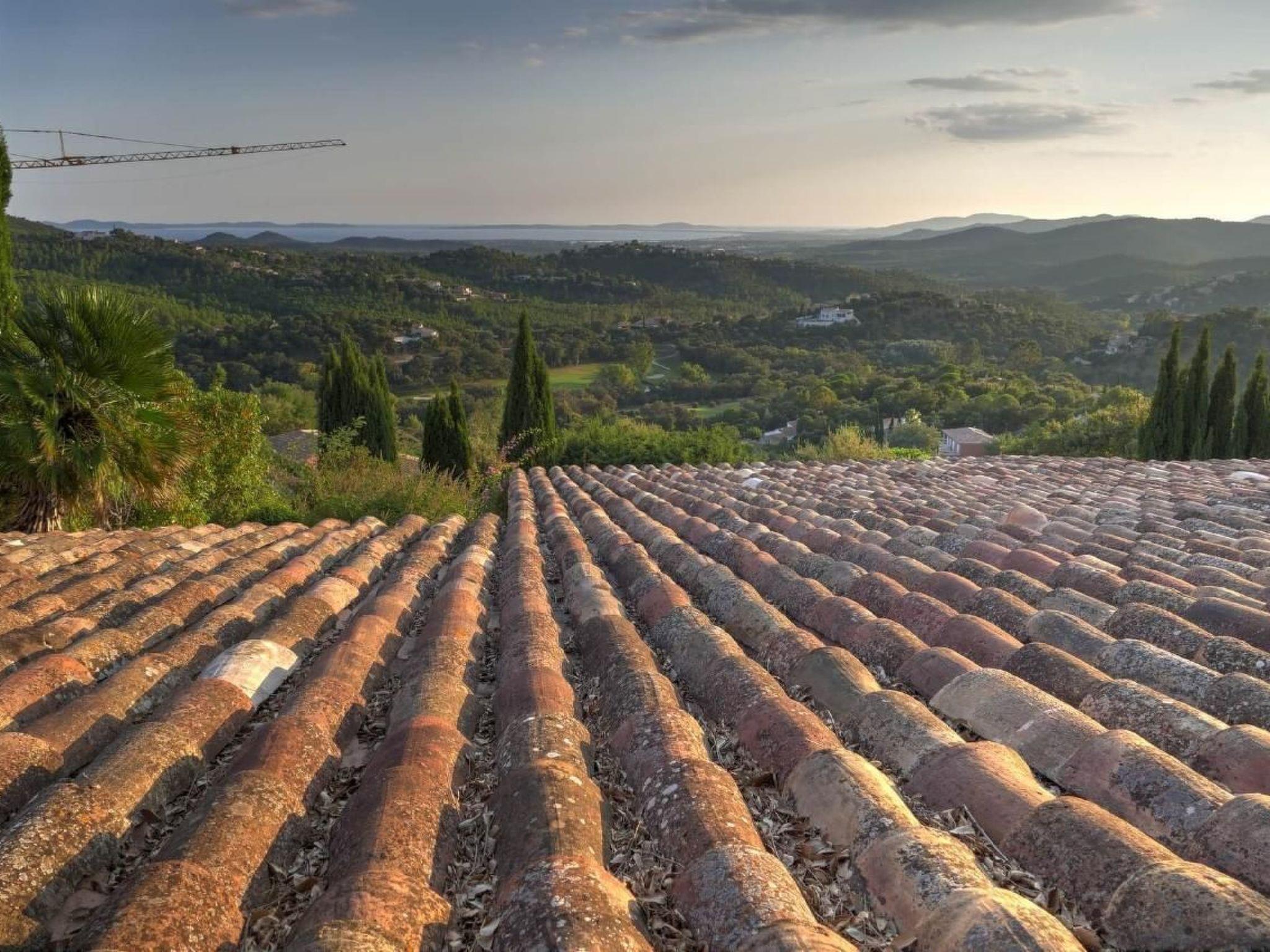 The renovated villa in Valcros (near La Londe les Maures) is located in a quiet residential area on a hill in the foothills of the Massif des Maures. From the detached house and the terraces you can enjoy a fantastic panoramic view of the entire bay of Hyeres with the Giens peninsula and the Ile de Porquerolles. The garden is shaded by two cork oaks and a patio cover, but also offers plenty of sunny spots depending on your taste and the time of year. The 12 x 6 metre pool is located in a slightly lower part of the garden. The house and garden are south-west facing, so you will always find a suitable spot with a good view. The house has an allocated parking space (further visitor parking spaces are also available), which is located at the end of a cul-de-sac. Access to the property is via several steps. The plots are arranged in such a way that you are undisturbed in the house and garden.