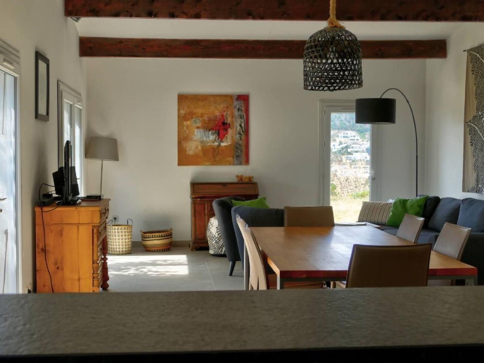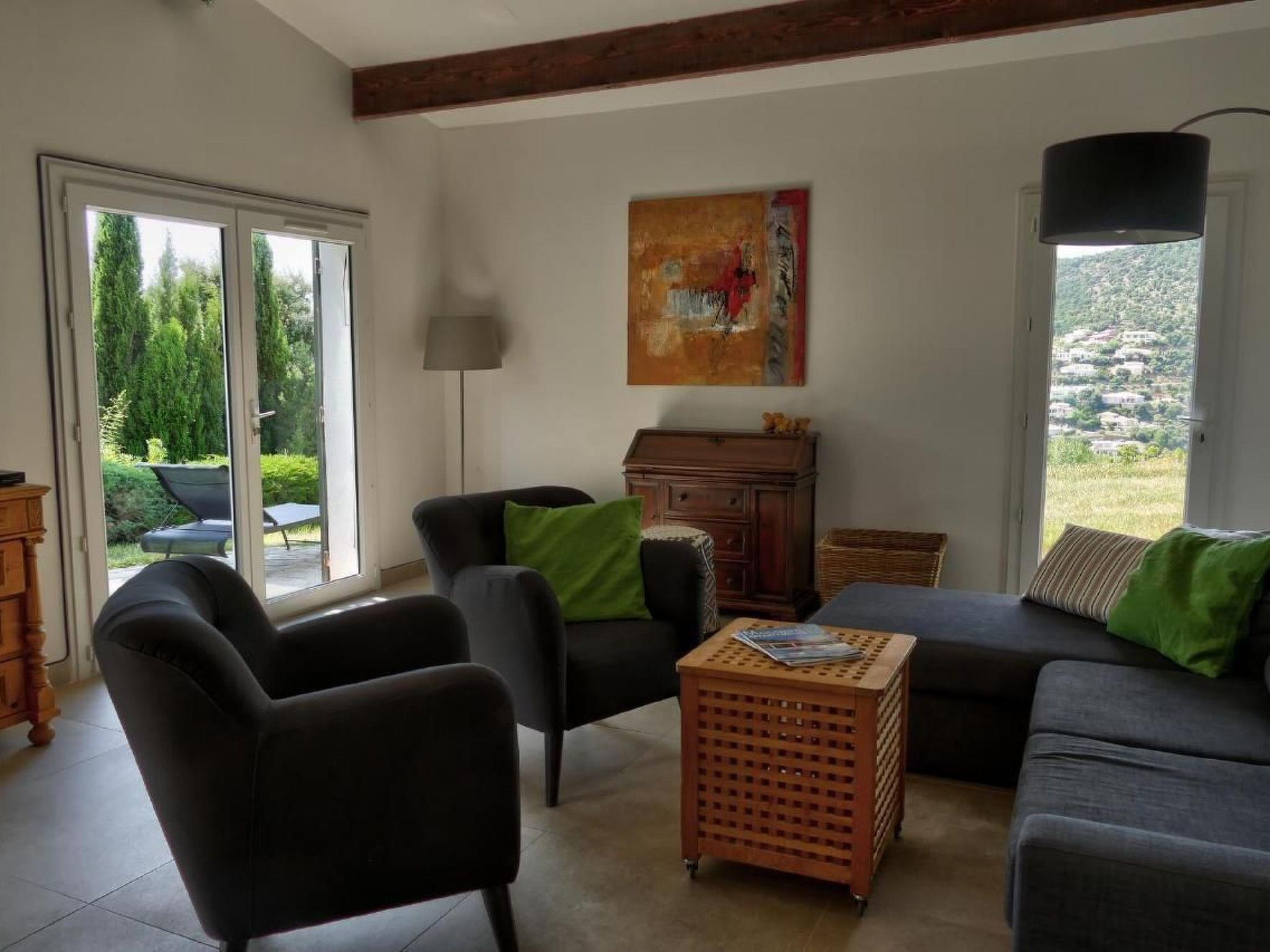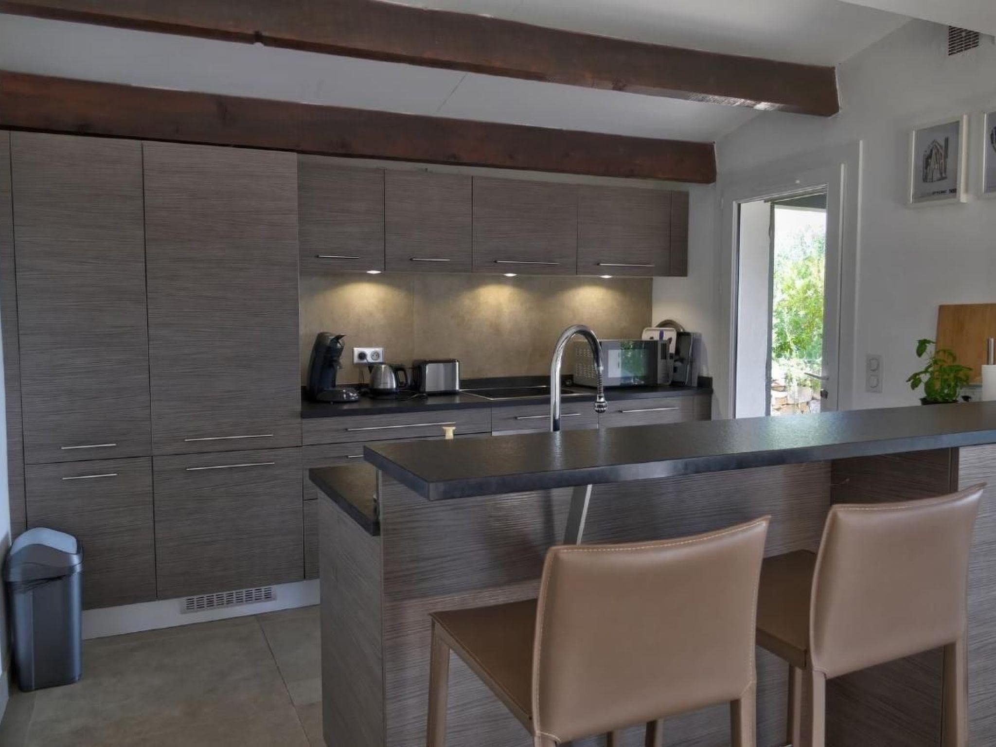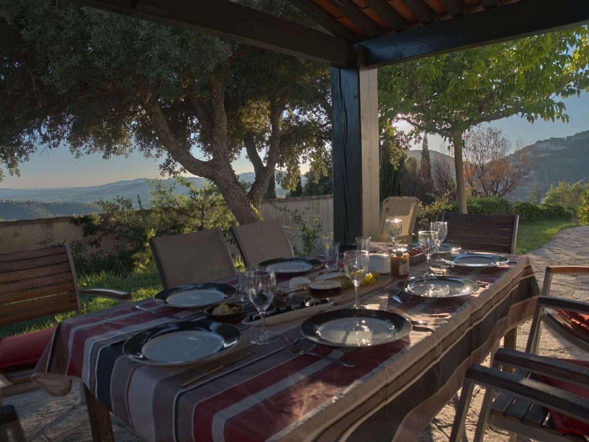 The renovated villa in Valcros (near La Londe les Maures) is located in a quiet residential area on a hill in the foothills of the Massif des Maures. From the detached house and the terraces you can enjoy a fantastic panoramic view of the entire bay of Hyeres with the Giens peninsula and the Ile de Porquerolles. The garden is shaded by two cork oaks and a patio cover, but also offers plenty of sunny spots depending on your taste and the time of year. The 12 x 6 metre pool is located in a slightly lower part of the garden. The house and garden are south-west facing, so you will always find a suitable spot with a good view. The house has an allocated parking space (further visitor parking spaces are also available), which is located at the end of a cul-de-sac. Access to the property is via several steps. The plots are arranged in such a way that you are undisturbed in the house and garden.