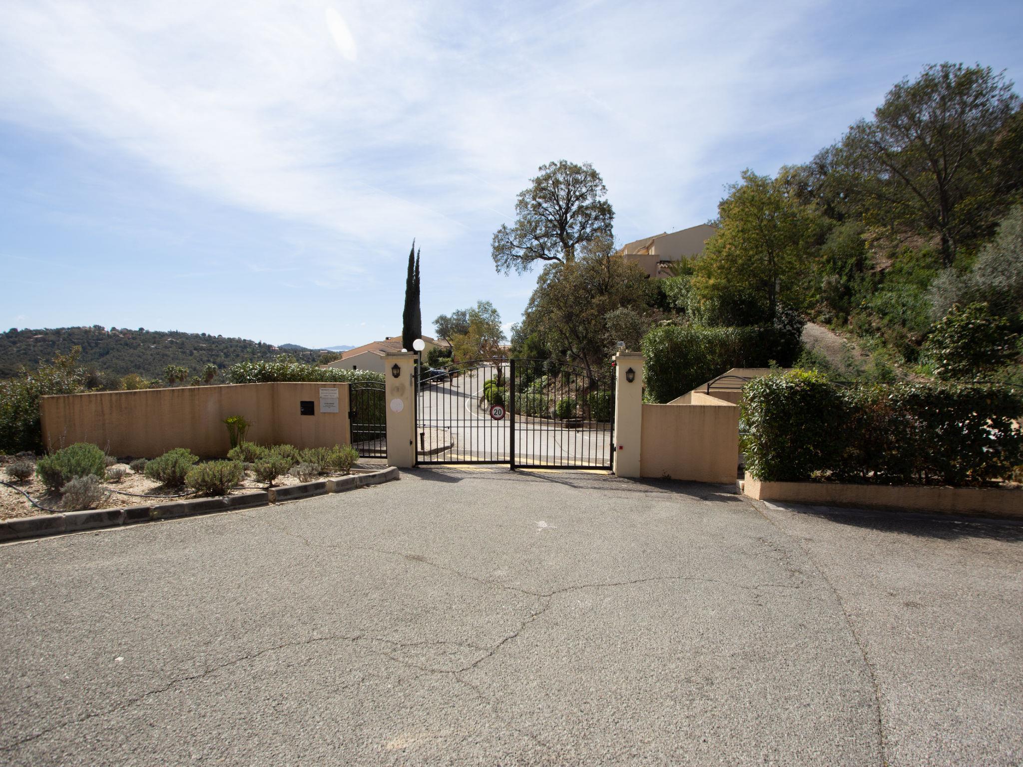 La Londe Les Maures: Residence "Le Belvédère". In the district of Valcros, outside the resort, 6 km from the centre of La Londe, in a quiet position on top of a hill, in the residential district, 9.8 km from the sea, 9.8 km from the beach. For shared use: well-kept garden 100 m2, swimming pool fenced (250 m2, seasonal availability: 18.Apr. - 01.Oct.). Children's pool, outdoor shower. Shop 6 km, supermarket 6 km, shopping centre 18 km, restaurant 6 km, bar 6 km, café 6 km, bus stop "La Cheylanne" 5.4 km, sandy beach "L'Argentière" 9.8 km. Golf course (18 hole) 3 km, tennis 3 km. Nearby attractions: Jardin Zoologique Tropical 4.8 km, Dolmen de Gaoutabry 6 km. Please note: car recommended. Residence with electric gates. The keys‘ handover takes place by the agency INTERHOME in Hyères sur le Port.