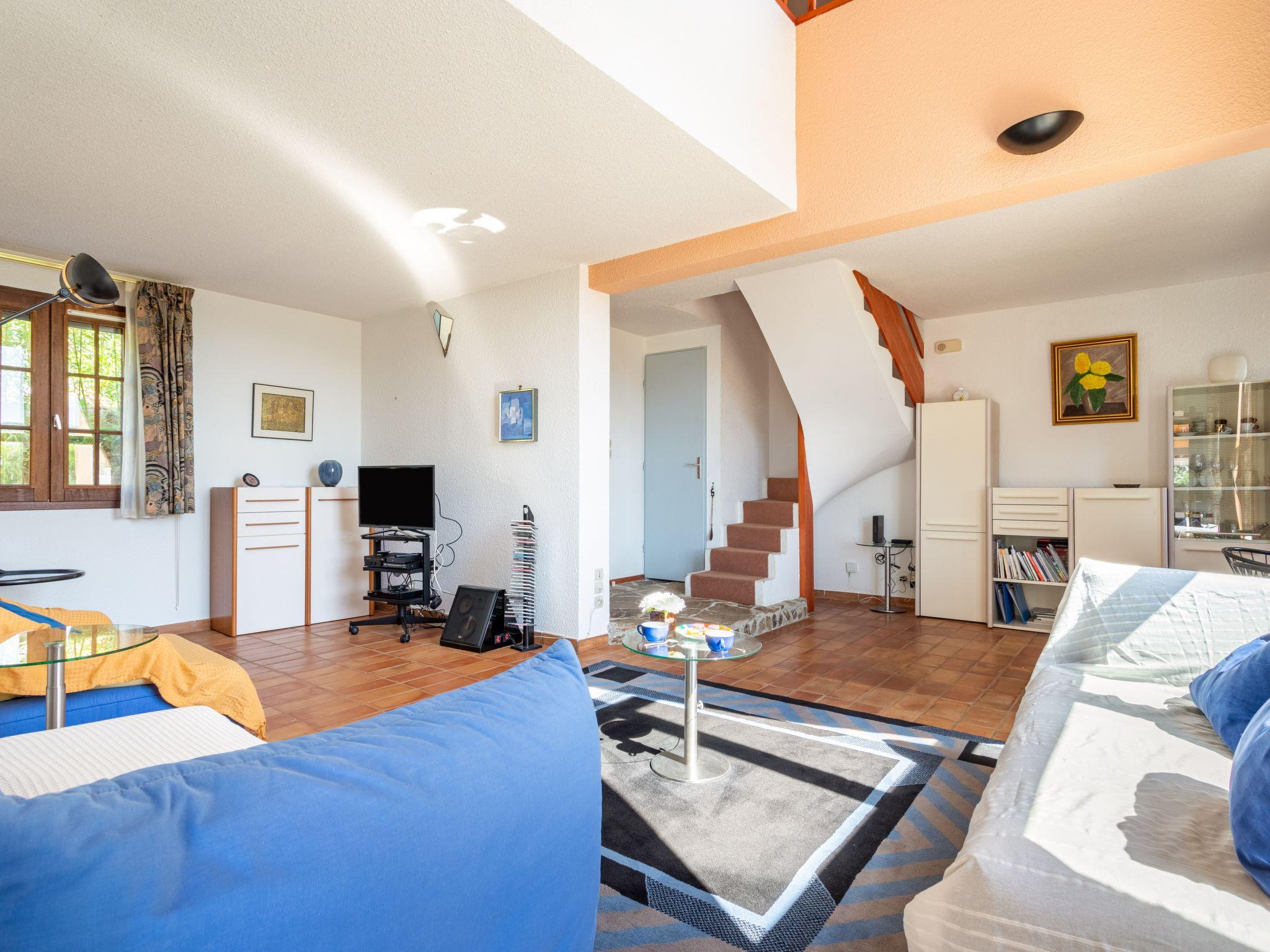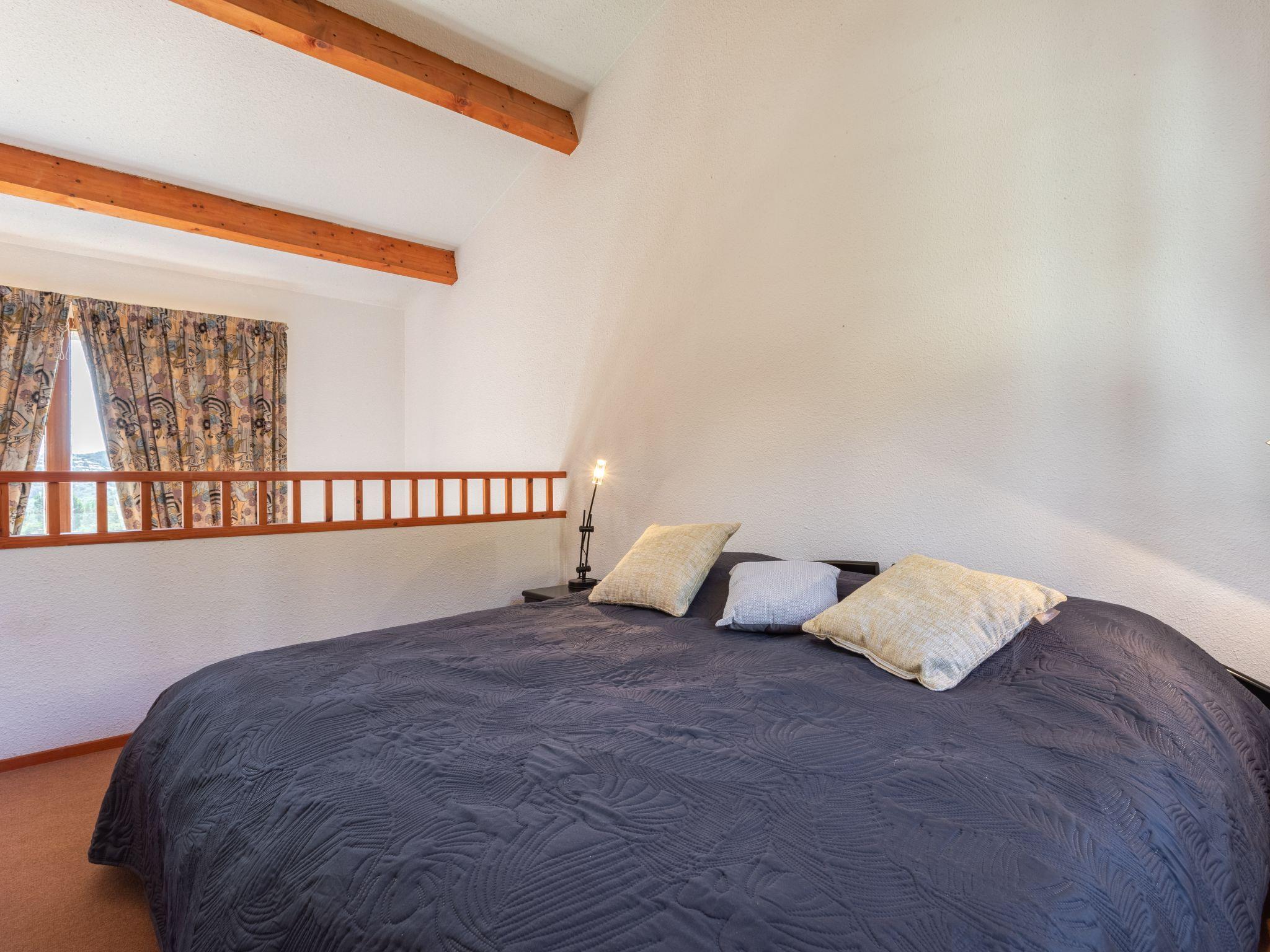 4-room house 98 m2 on 2 levels. Comfortable and cosy furnishings: living/dining room with TV, flat screen and hi-fi system. Exit to the veranda. 1 room with 1 double bed (2 x 90 cm, length 190 cm). Open kitchen (dishwasher, 4 induction hot plates, toaster, kettle, microwave, freezer, electric coffee machine). Bathroom, sep. WC. Electric heating, air-conditioning. Upper floor: 1 open room with 1 double bed (2 x 90 cm, length 190 cm). 1 room with 1 bed (90 cm, length 190 cm). Bath/WC. Balcony 12 m2, terrace 75 m2. Terrace furniture, barbecue. Beautiful view of the valley. Facilities: washing machine, dryer. Internet (WiFi, free). Parking at the house. Please note: TV only FR. Smoke alarm. 830710008605H