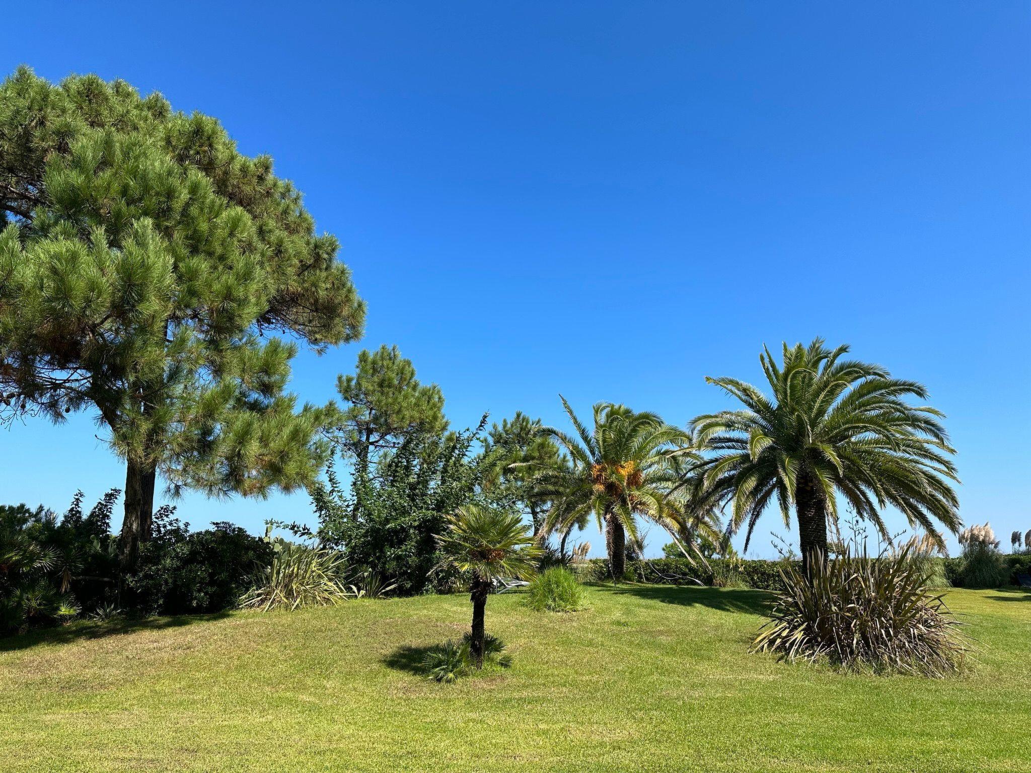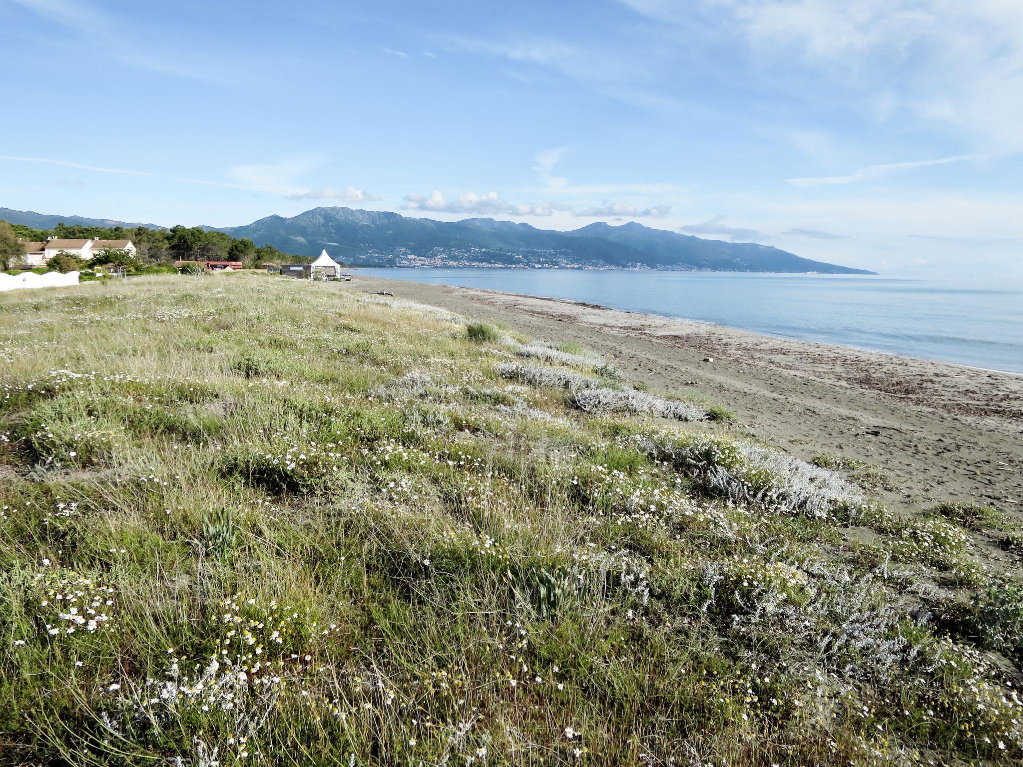 Cosy residence "Les Chênes". 30 houses in the residence. 14 km from the centre of Bastia, 200 m from the sea, 200 m from the beach, direct access to the beach. For shared use: beautiful, well-kept garden with plants and trees, meadow. Outdoor shower, barbecue. In the complex: reception, bar, table tennis, washing machine, tumble dryer (for shared use, extra). Parking on the premises. Shop, supermarket, restaurant 250 m, bus stop 100 m, sandy beach "Lido de la Marana" 200 m. Please note: car recommended. Residence with electric gates. The photograph shows a typical example.