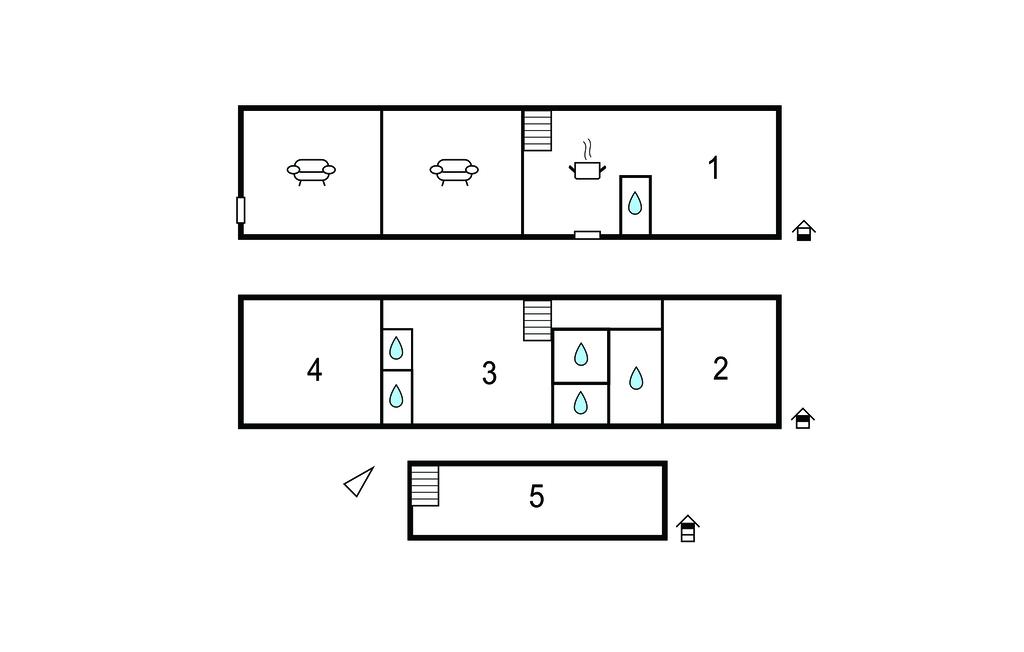 Badeværelse 5m2 (nr. 2) - WC. Varmt og koldt vand. Bruser