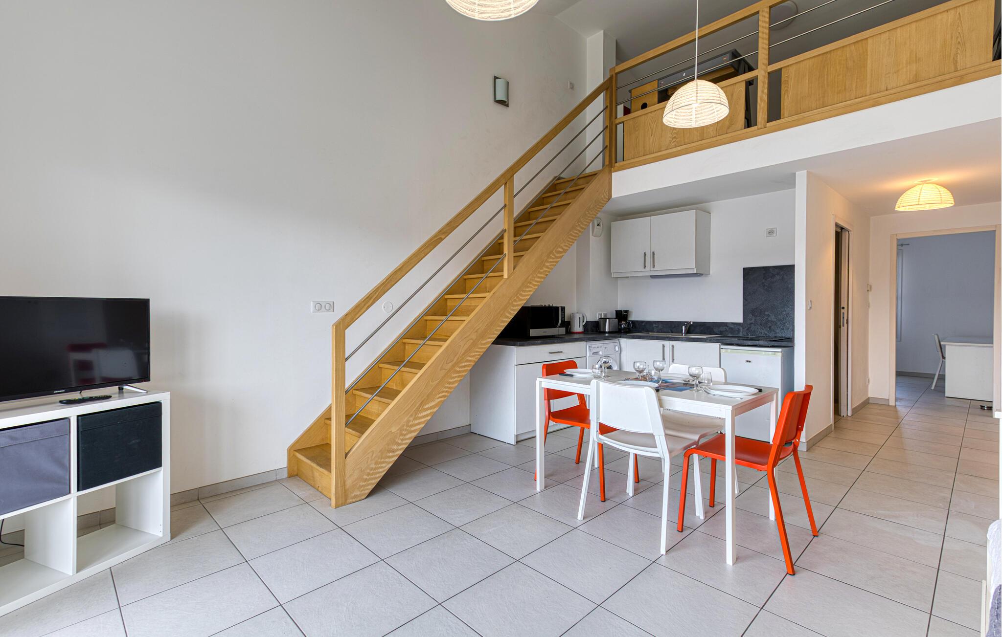 Nyd en varieret ferie i denne charmerende ferielejlighed i rolige omgivelser. Denne lyse og praktisk indrettede ferielejlighed er ideelt placeret til spontant at vælge mellem stranden og byen. Fremstil lækre retter med friske råvarer fra markedet i det åbne køkken, og lad den behagelige brise strømme gennem de lyse rum under jeres måltider. Planlæg jeres aktiviteter på en afslappet måde, og slap af efter en begivenhedsrig dag. Start dagen med en solid morgenmad på altanen, og nyd den rolige atmosfære med et glas vin om aftenen. Udforsk La Rochelles gamle havn, slentr langs kajerne, og vandr derefter gennem de smukke gyder i den gamle bydel. Oplev de mange små butikker i gågaderne og arkaderne, nyd en dag på stranden på Île de Ré, eller tag en bådtur til den fascinerende fæstningsø Fort Boyard. Besøg La Rochelle Akvarium, smag friske østers ved havet i Marennes-Oléron, eller tag en vandretur gennem naturreservatet Marais Poitevin.
