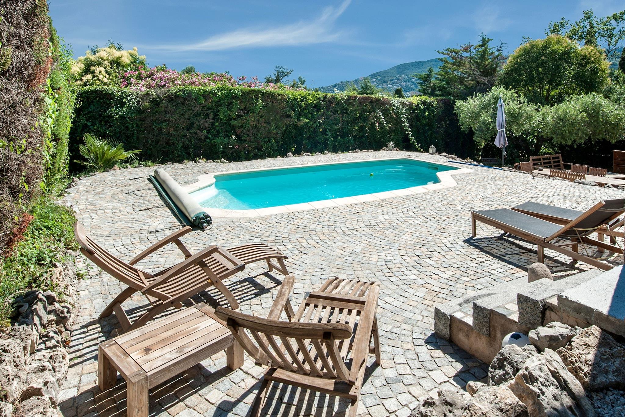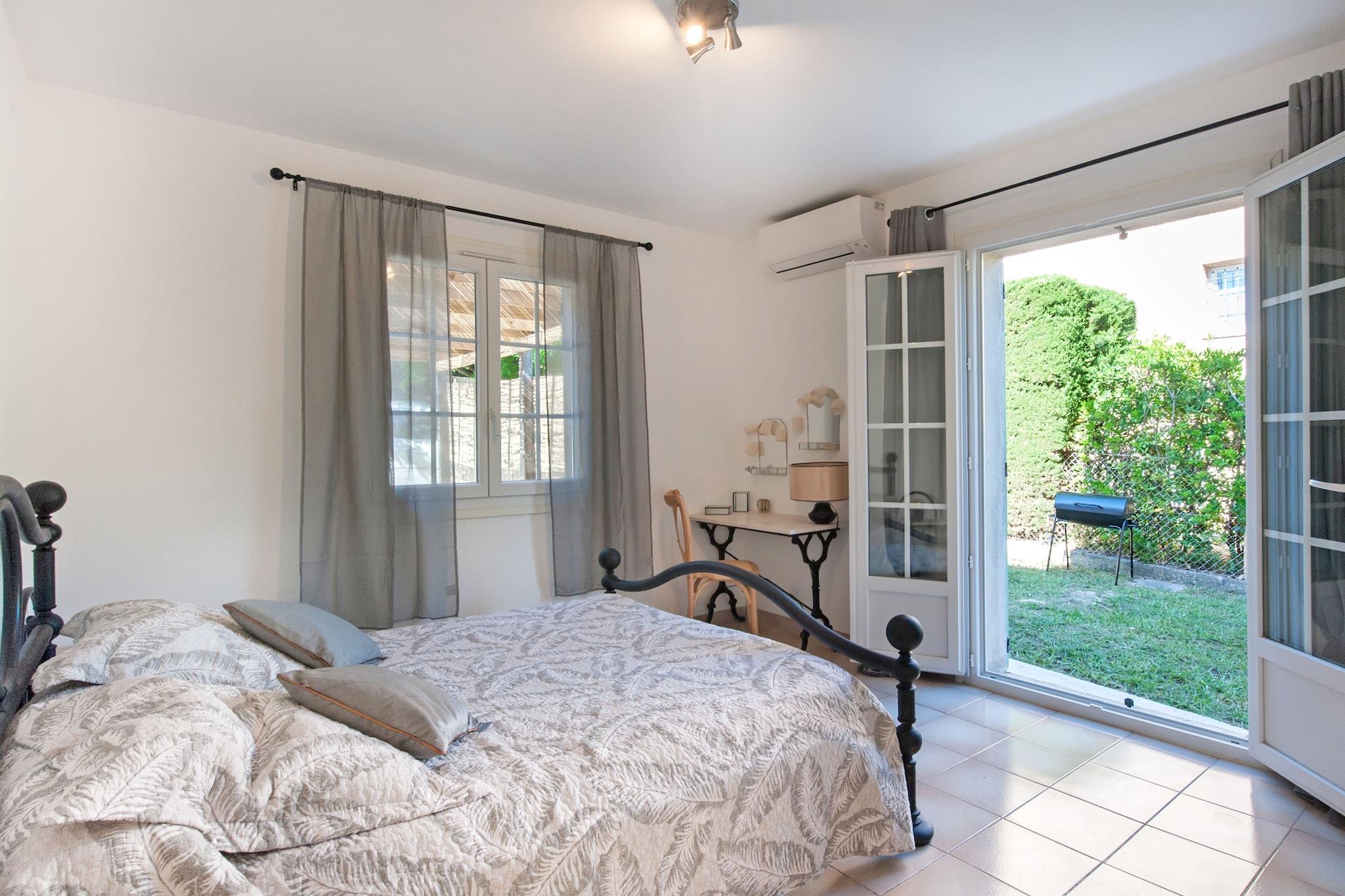 Dette charmerende feriehus i La Roquette-sur-Siagne er perfekt til et par, der søger en fredelig flugt nær den franske riviera. Stueetagen har en lys stue med en dobbelt sovesofa og tv, et fuldt udstyret åbent køkken med espresso- og filterkaffemaskiner, ovn, mikroovn, opvaskemaskine og køleskab med fryser samt en spiseplads. Soveværelset har en komfortabel dobbeltseng, og badeværelset har bruser og håndvask. Et separat toilet, aircondition og vaskefaciliteter (tørretumbler og vaskemaskine) tilføjer bekvemmelighed. Træd udenfor gennem havens døre for at nyde en privat have med liggestole, parasol, grill og udendørsmøbler. Den fælles swimmingpool (8x4 m) med vandalarm er ideel til at køle af på varme eftermiddage. Parkering og carport er til rådighed på stedet. Beliggende kun 150 m fra Intermarché?lokalt? og 200 m fra en direkte buslinje til Cannes?lokalt?, er boligen godt forbundet, men alligevel gemt væk i et roligt kvarter. Udforsk nærliggende attraktioner såsom Royal Mougins Golf Course (4 km), Mandelieu-stranden (6 km) og nattelivet ved Les Bastides (1,1 km)?lokalt?. Til spisning kan du prøve lokale favoritter såsom La Nonna, Mimi Brunch Restaurant eller Lou Pizzaiol. Naturelskere kan besøge Les Colverts Garden eller slentre langs Sentier des berges de la Siagne. Med togstationer og lufthavne tæt på giver dette kæledyrsvenlige tilflugtssted med gratis Wi-Fi et afslappende og godt forbundet ophold.