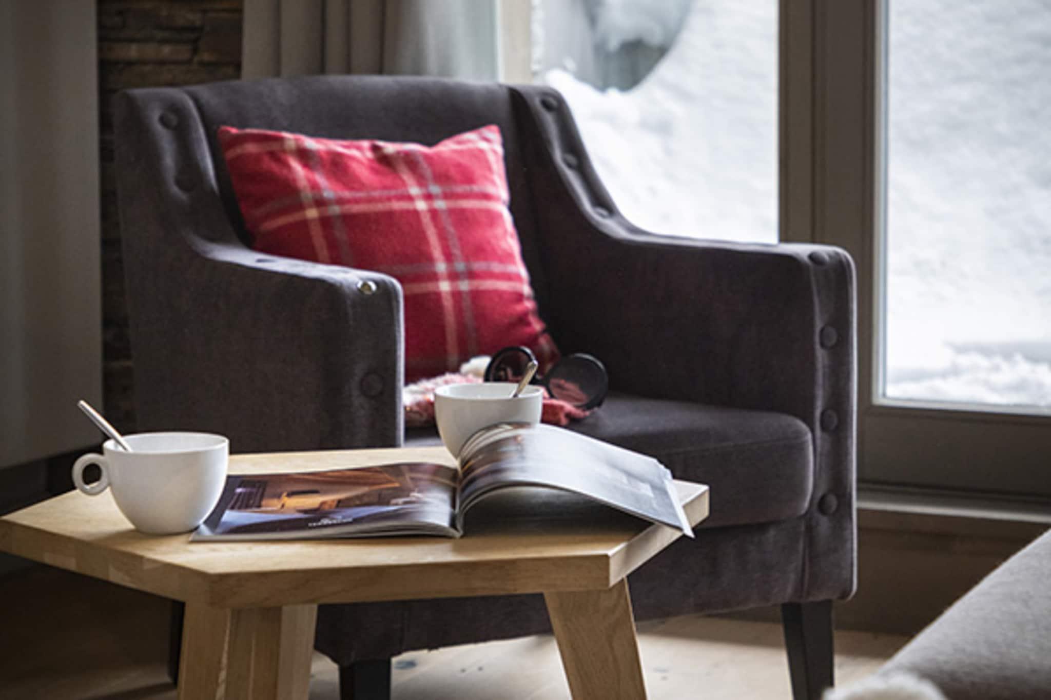 Stue(Fjernsyn(fladskærm), sofahjørne), åbent køkken(kogeplade(glaskeramisk), elkedel, brødrister, kaffemaskine, ovn, mikrobølgeovn, opvaskemaskine , køleskab, ), soveværelse(dobbeltseng(180 x 200 cm)), Hytte(køjeseng(90 x 200 cm)), badeværelse(bruser, toilet), balkon eller terrasse