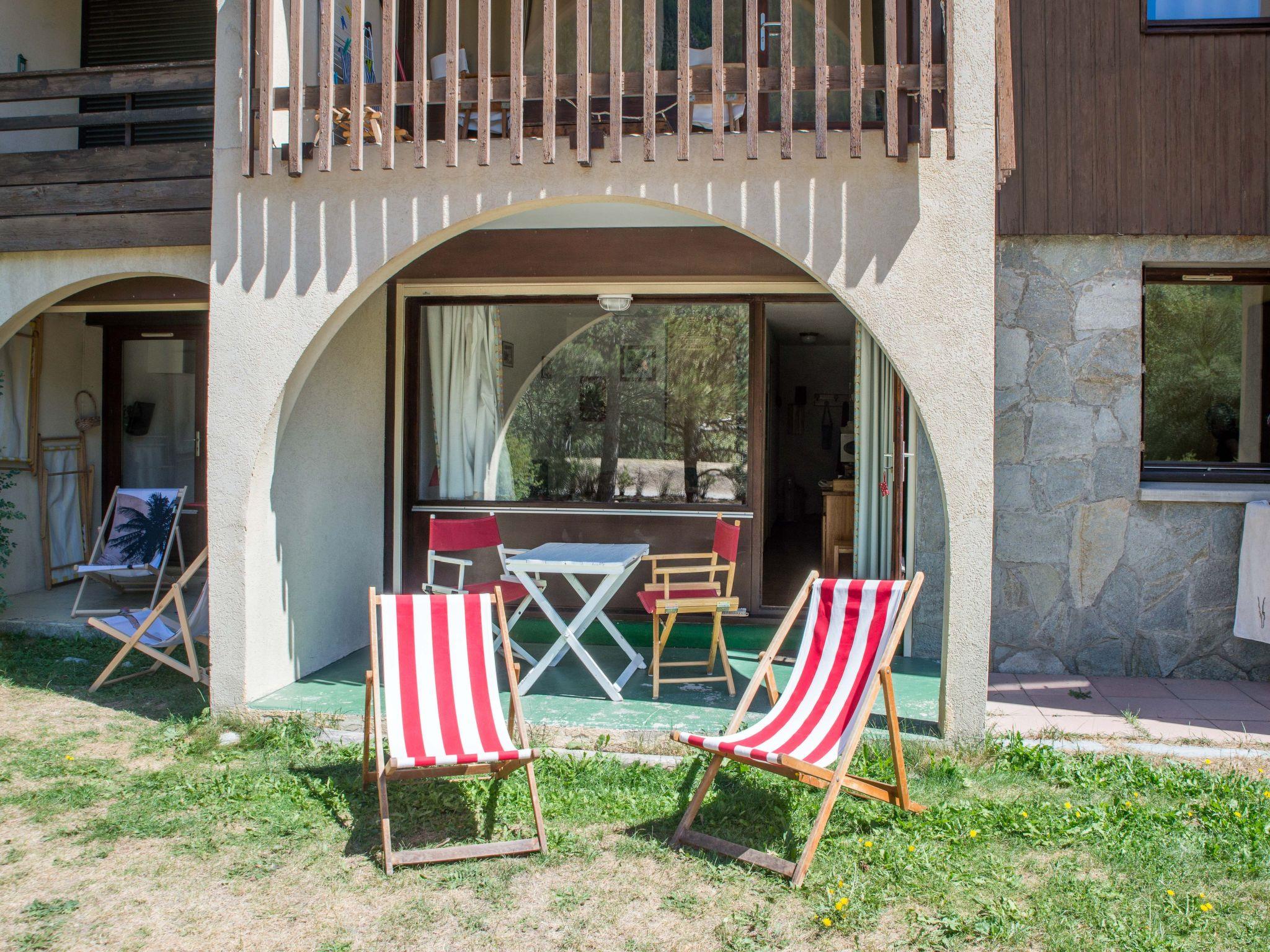 Outside, the flat has a pleasant terrace leading onto an unfenced communal garden, inviting you to enjoy cosy evenings with family or friends. This outdoor setting lends itself to relaxation and leisure, with garden furniture and a deckchair available for relaxing in the great outdoors. Free parking at the foot of the building, as well as ski lockers and a lockable bike room on the ground floor, add a touch of convenience to your stay.