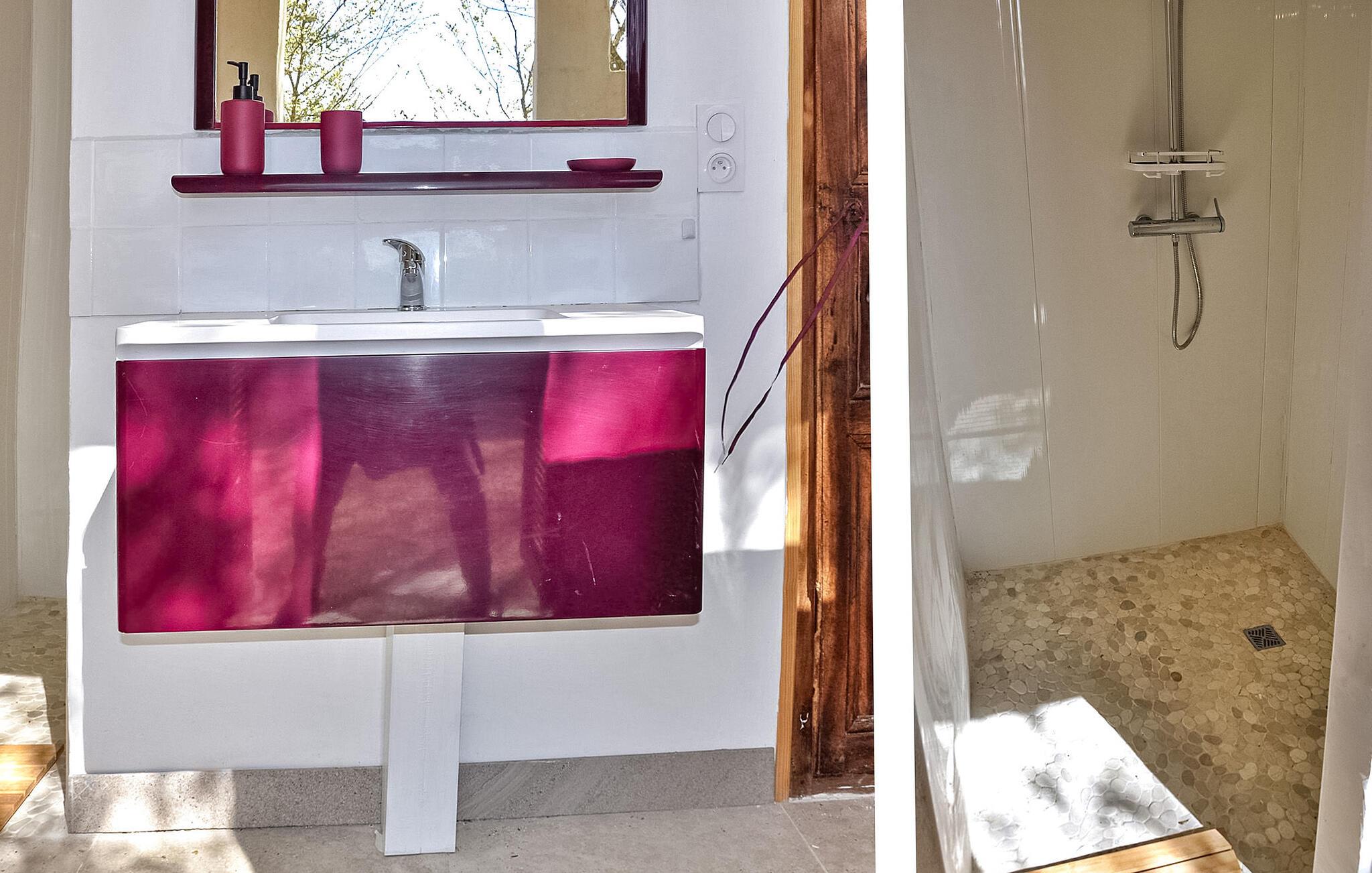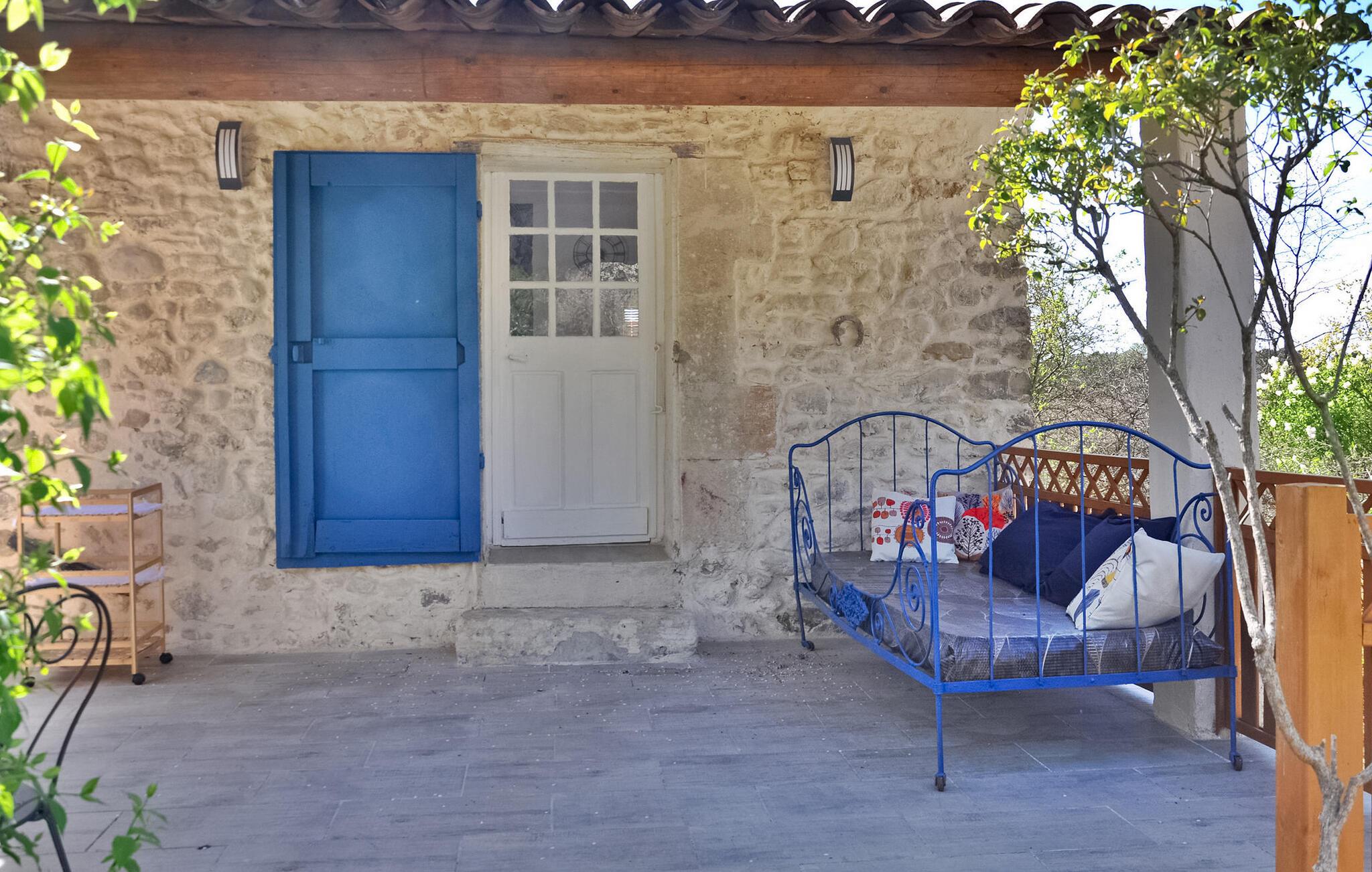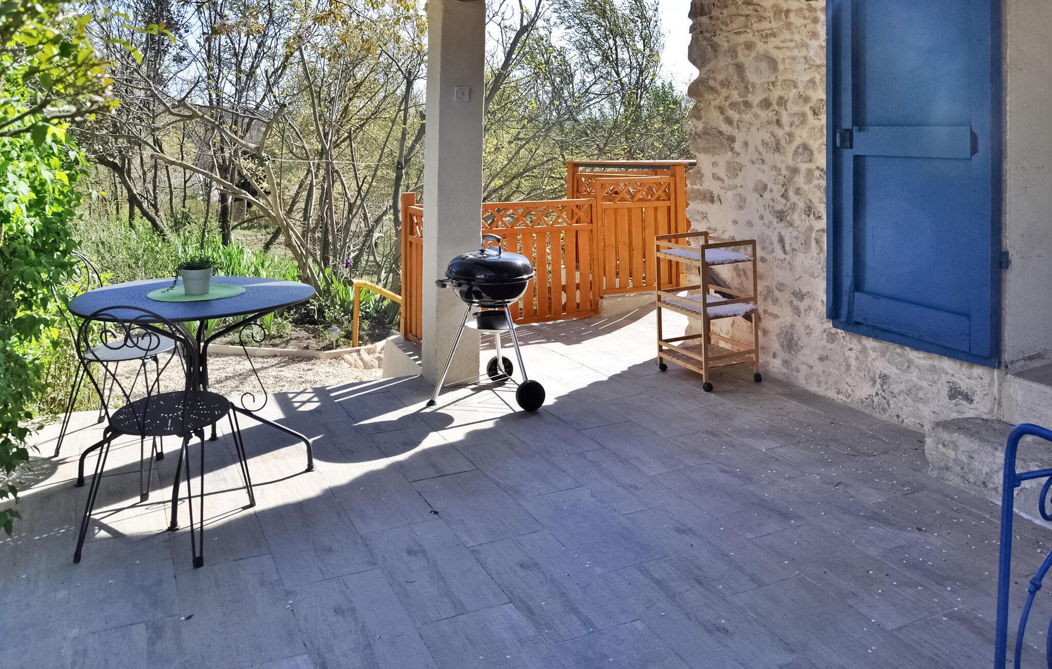 Sommerhuset i La Tour d'Aigues ligger på en privat grund nær landsbyens centrum. Dette romantiske tilflugtssted omfatter et opholdsområde med en sovesofa på haveniveau og et lavere niveau, der er tilgængeligt eksternt, og som indeholder soveværelset, brusebadet og toilettet. Udenfor er der en terrasse med siddepladser og en grill samt en fælles swimmingpool med liggestole. Ejendommen strækker sig over 7000 m², med ca. 2500 m² afsat til udlejningen. Gæsterne har adgang til swimmingpoolen, som lejlighedsvis bruges af ejerne, der bor i en separat villa på stedet, som ligger omkring 30 meter væk. Ejendommen består af sommerhuset og ejernes selvstændige villa, ca. 1 km fra landsbyens centrum af La Tour d'Aigues, hvor du finder alle de lokale butikker. La Tour d'Aigues ligger i hjertet af Provence. Landsbyen er omgivet af store dyrkede sletter og bjergskråninger af vinmarker, der producerer en berømt vin. Du vil også opdage dets store renæssanceslot. Oplev en autentisk fransk gite i Vaucluse i Provence.