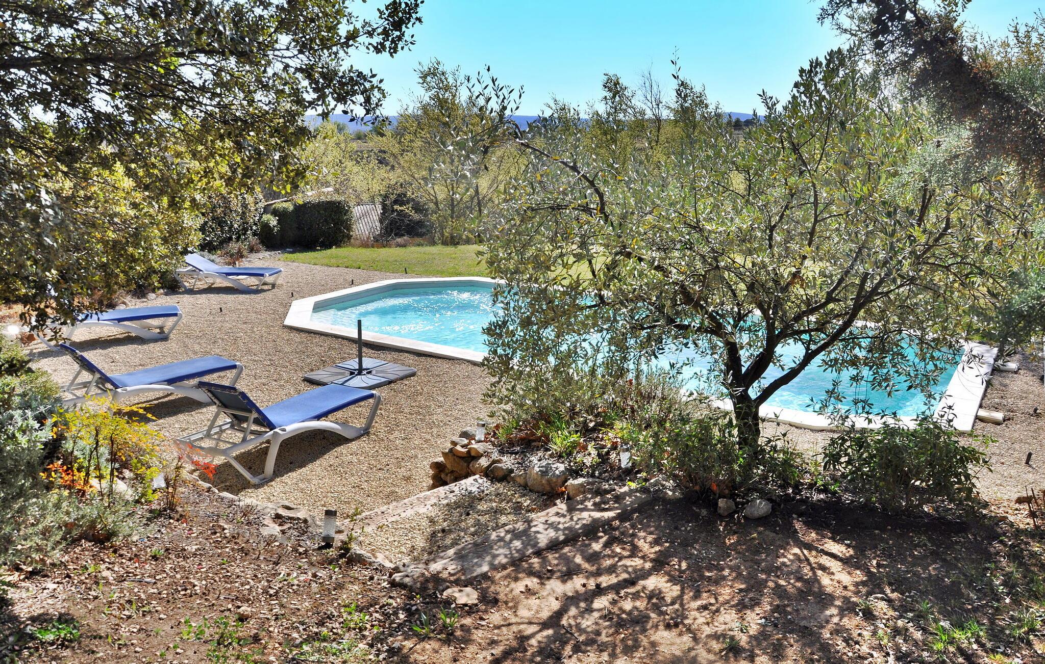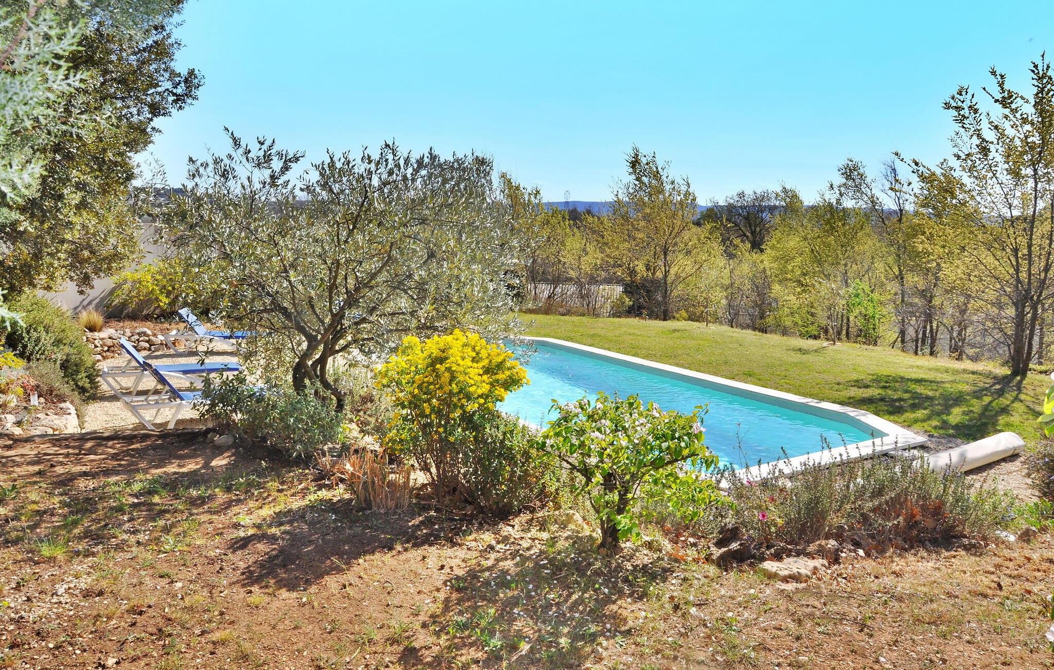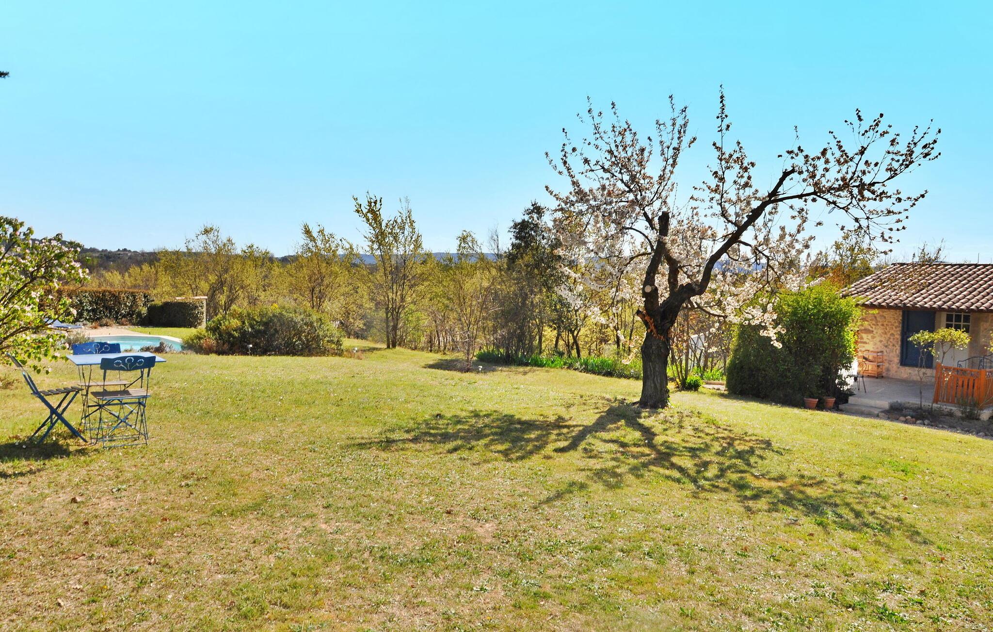 Sommerhuset i La Tour d'Aigues ligger på en privat grund nær landsbyens centrum. Dette romantiske tilflugtssted omfatter et opholdsområde med en sovesofa på haveniveau og et lavere niveau, der er tilgængeligt eksternt, og som indeholder soveværelset, brusebadet og toilettet. Udenfor er der en terrasse med siddepladser og en grill samt en fælles swimmingpool med liggestole. Ejendommen strækker sig over 7000 m², med ca. 2500 m² afsat til udlejningen. Gæsterne har adgang til swimmingpoolen, som lejlighedsvis bruges af ejerne, der bor i en separat villa på stedet, som ligger omkring 30 meter væk. Ejendommen består af sommerhuset og ejernes selvstændige villa, ca. 1 km fra landsbyens centrum af La Tour d'Aigues, hvor du finder alle de lokale butikker. La Tour d'Aigues ligger i hjertet af Provence. Landsbyen er omgivet af store dyrkede sletter og bjergskråninger af vinmarker, der producerer en berømt vin. Du vil også opdage dets store renæssanceslot. Oplev en autentisk fransk gite i Vaucluse i Provence.