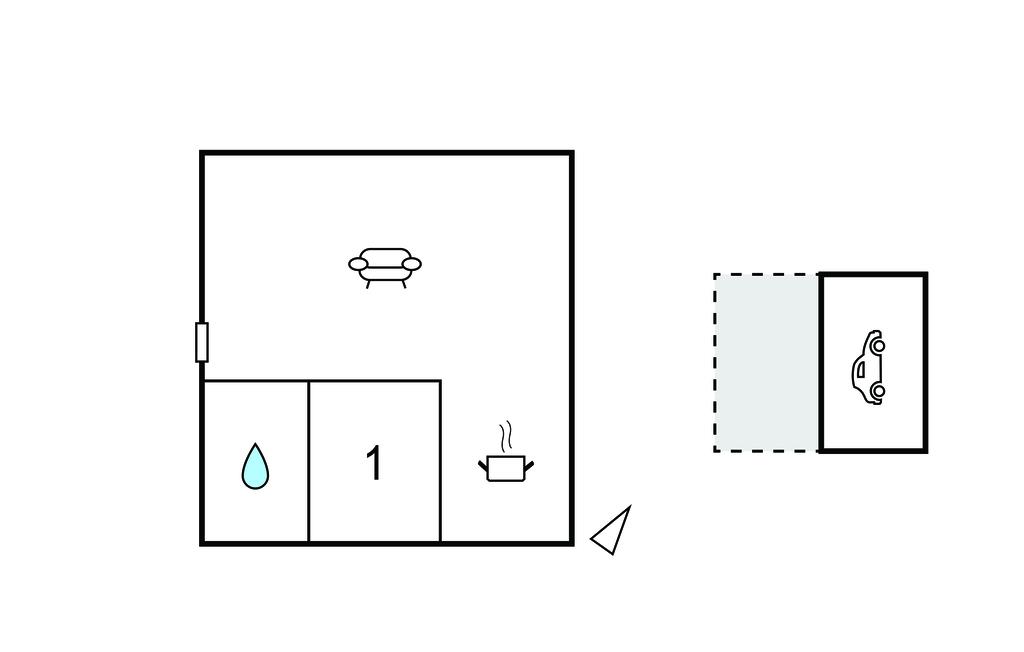 Komb. spisestue/køkken 21m2 - 2 Sovepladser. (Sofa, madras eller lignende).
