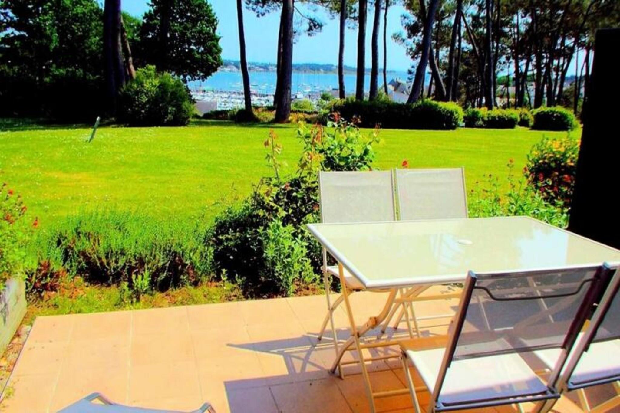 Denne charmerende 2-værelses lejlighed, beliggende i stueetagen af ??en bolig med udsigt over havnen i La Trinité-sur-Mer, tilbyder et komfortabelt tilflugtssted for op til 4 personer. Lejligheden på 35 m² har en indgang med et skab, en stue med spiseplads (bord og stole) og et opholdsområde med et tv og en sovesofa med plads til 2 personer. Fra stuen er der udgang til en syd-østvendt terrasse med havemøbler, med panoramaudsigt over havnen. Lejligheden er udstyret med et fuldt funktionelt køkkenområde, herunder komfur med ovn, 4-brænder kogeplade, opvaskemaskine, mikroovn og bordplade køleskab med opbevaringsrum. Soveværelset har en dobbeltseng (160 cm, dyne), og ejendommen indeholder et pulver-rum og et separat toilet. Gæster kan parkere på den anviste plads nr. 0.02. Placeringen er ideel, kun 500 m fra butikker og 1,5 km fra Plage du Port, hvilket giver nem adgang til både lokale faciliteter og strandaktiviteter. Et ekstra kæledyr er tilladt mod et tillæg, og en forbrugspakke er påkrævet undtagen i højsæsonen (23. maj til 20. september 2025). Valgfri tjenester såsom slutrengøring, leje af linned, udstyr til børnepasning og Wi-Fi er tilgængelige.
