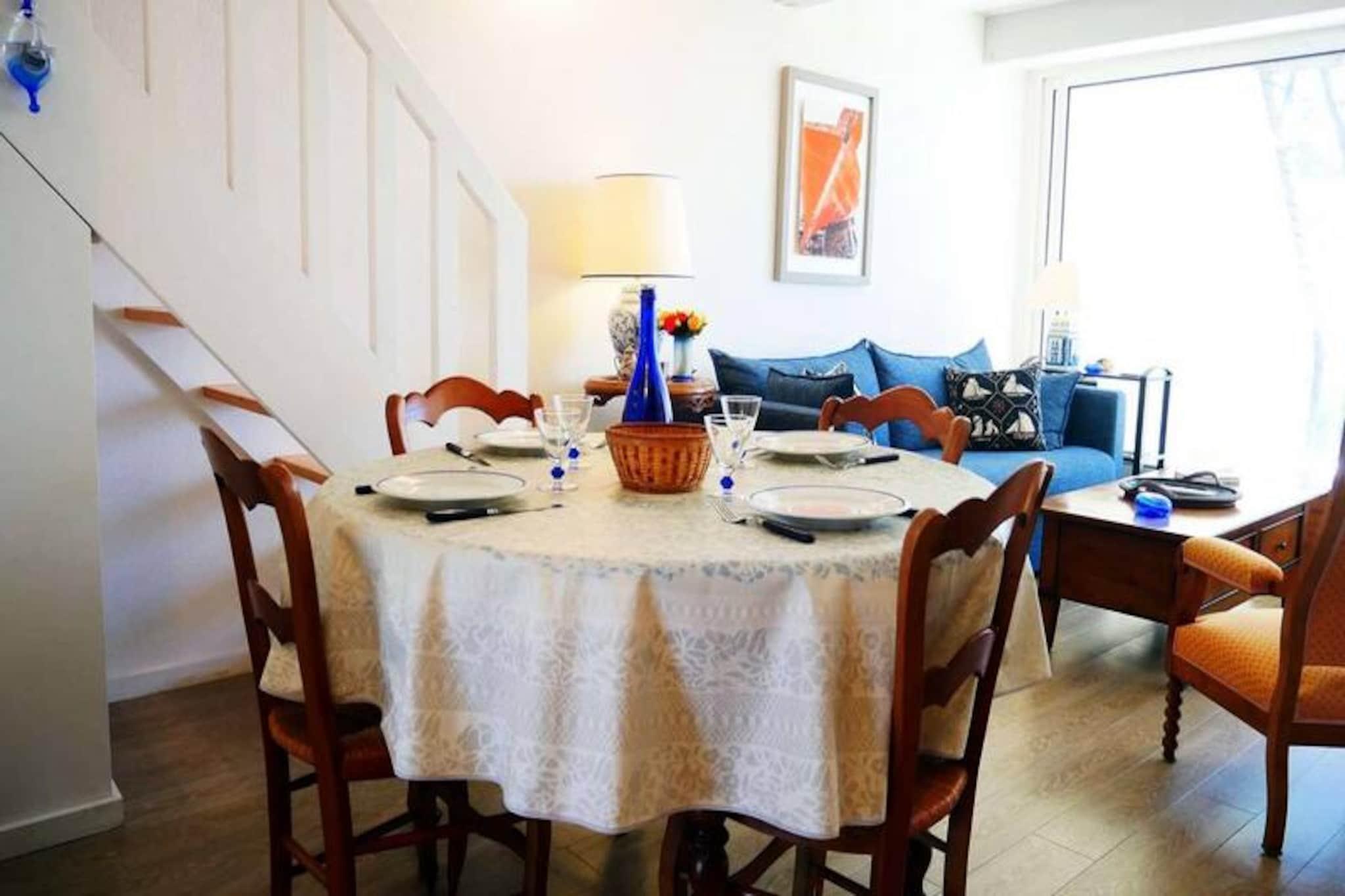 Denne smukke 3-v?relses duplex lejlighed er designet til op til 4 g?ster, og byder p? et sovev?relse med 2 enkeltsenge og et andet med en dobbeltseng, begge tilbyder hyggelig indkvartering med t?pper. Lejligheden er ikke k?ledyrsvenlig, hvilket sikrer et roligt og fredeligt milj?. Det omfatter ogs? parkering og en balkon med en dejlig udsigt over havnen. En forbrugspakke er ekstra, men varme og energi er inkluderet i ugeprisen. Slutreng?ring og leje af senget?j er tilg?ngelig mod et ekstra gebyr. Lejligheden er ideelt beliggende, kun 500 meter fra butikker og 2 km fra strandene, hvilket g?r den til en perfekt base for at udforske omr?det. Udsigten over havnen tilf?jer dens charme, og n?rliggende attraktioner omfatter lokale markeder, caf?er og andre kystsev?rdigheder. Det rolige milj? med fyrretr?er giver fredelige omgivelser, mens de stadig er t?t p? pulserende attraktioner. Indvendigt har lejligheden et veludstyret k?kken med moderne bekvemmeligheder, herunder en 3-br?nder induktionskomfur, opvaskemaskine, ovn og k?leskab/fryser. I stuen er der spiseplads og hyggelig lounge med sofa, l?nestole og tv. Yderligere bekvemmeligheder omfatter en vaskemaskine, et brusebad med toilet og et ekstra toilet nedenunder.