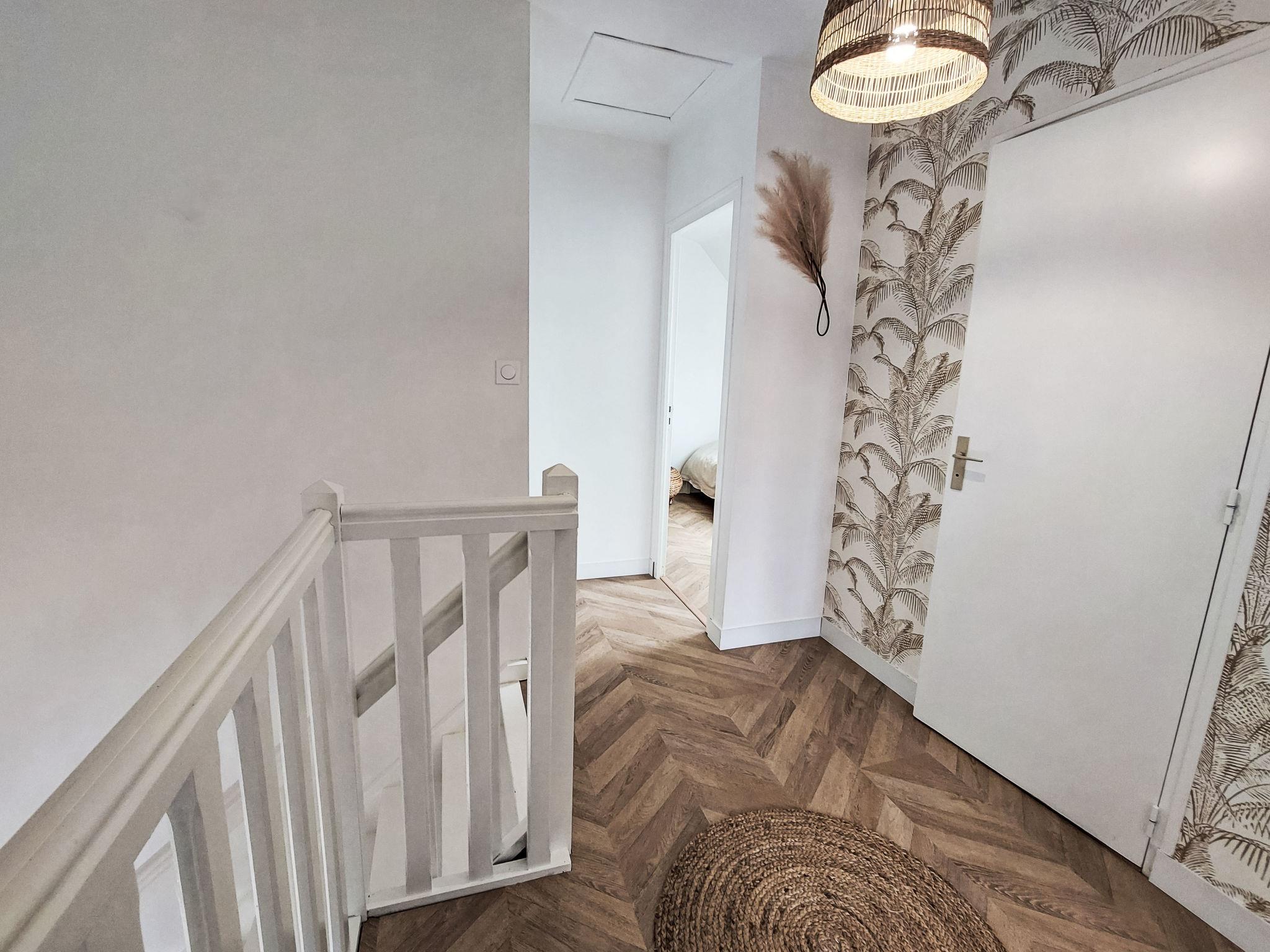 5-room terraced house 107 m2 on 2 levels. Comfortable and beautiful furnishings: living/dining room with TV (flat screen). Exit to the terrace. 1 room with 1 double bed (140 cm, length 190 cm). Kitchen (oven, dishwasher, 3 induction hot plates, toaster, kettle, microwave, electric coffee machine). Exit to the terrace. Shower, sep. WC. Upper floor: 1 room with sloping ceilings with 1 french bed (140 cm, length 190 cm). 1 room with sloping ceilings with 1 french bed (140 cm, length 190 cm). 1 room with sloping ceilings with 2 beds (90 cm, length 200 cm). Bath/shower, sep. WC. Electric heating. Terrace, south facing position. Facilities: washing machine, children's high chair, baby cot. Internet (WiFi, free). Please note: non-smoking house. Maximum 1 pet/ dog allowed. Smoke alarm. Offer by a private individual according to Art. 155, IV of CGI.