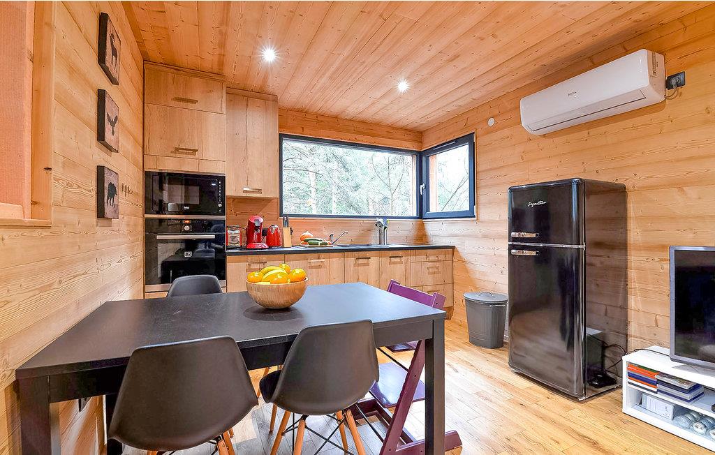 Dette træhus ligger i udkanten af ??en skov, 16 km fra Colmar. Det meget funktionelle og veludstyrede hus har aircondition og har to terrasser, en på taget.