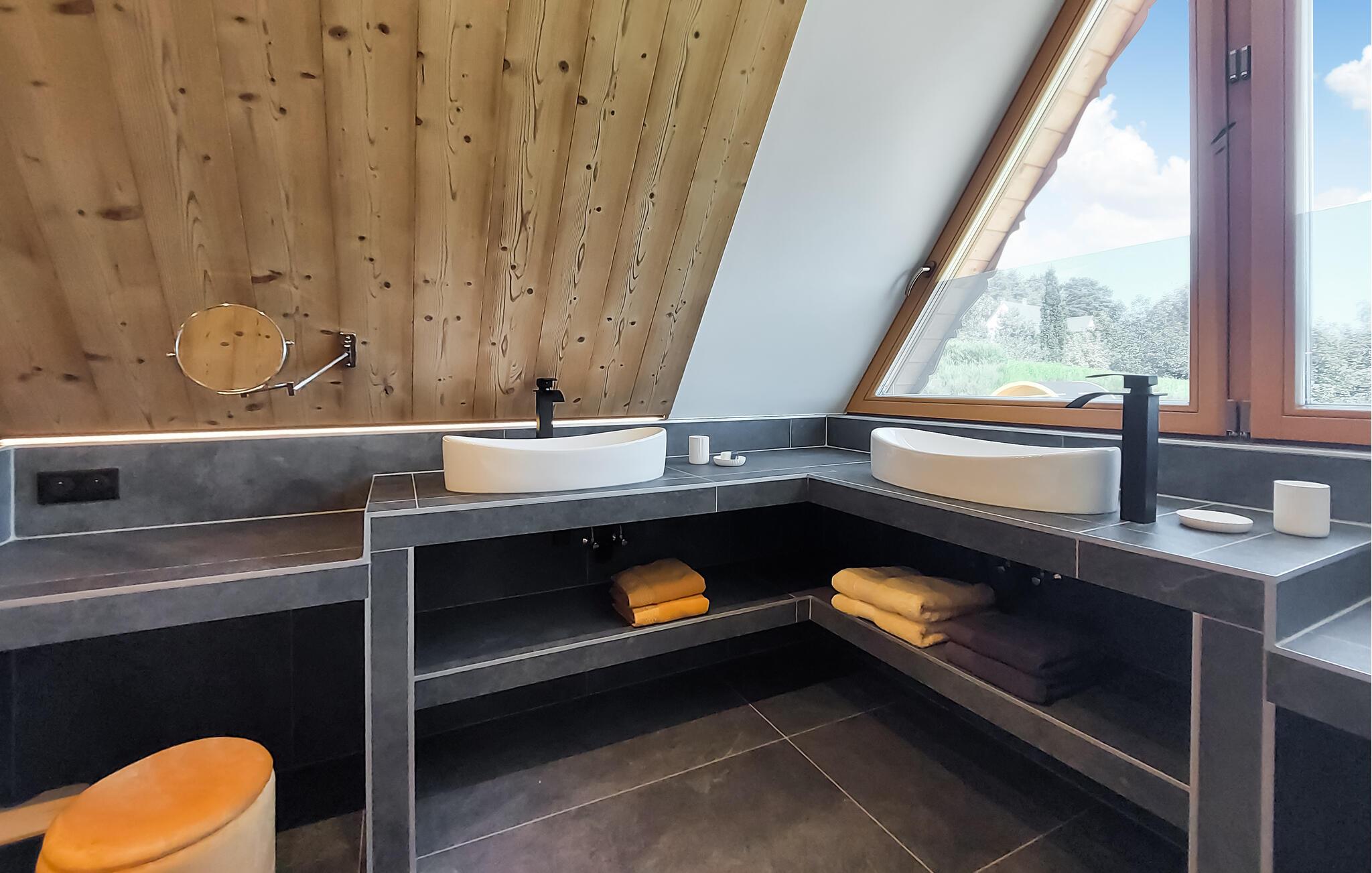I Labaroche, i hjertet af den regionale naturpark Ballons des Vosges, venter dette chalet, som er bygget efter traditionelle metoder og forener naturen med moderne komfort. Nyd afslappende dage med hele familien i chaletets hyggelige indre eller i den skønne udendørs sauna. Slap også af på den rummelige sydvendte terrasse, hvor I kan nyde solens stråler hele dagen. Træk vejret i den friske bjergluft, og lad hverdagens stress forsvinde.