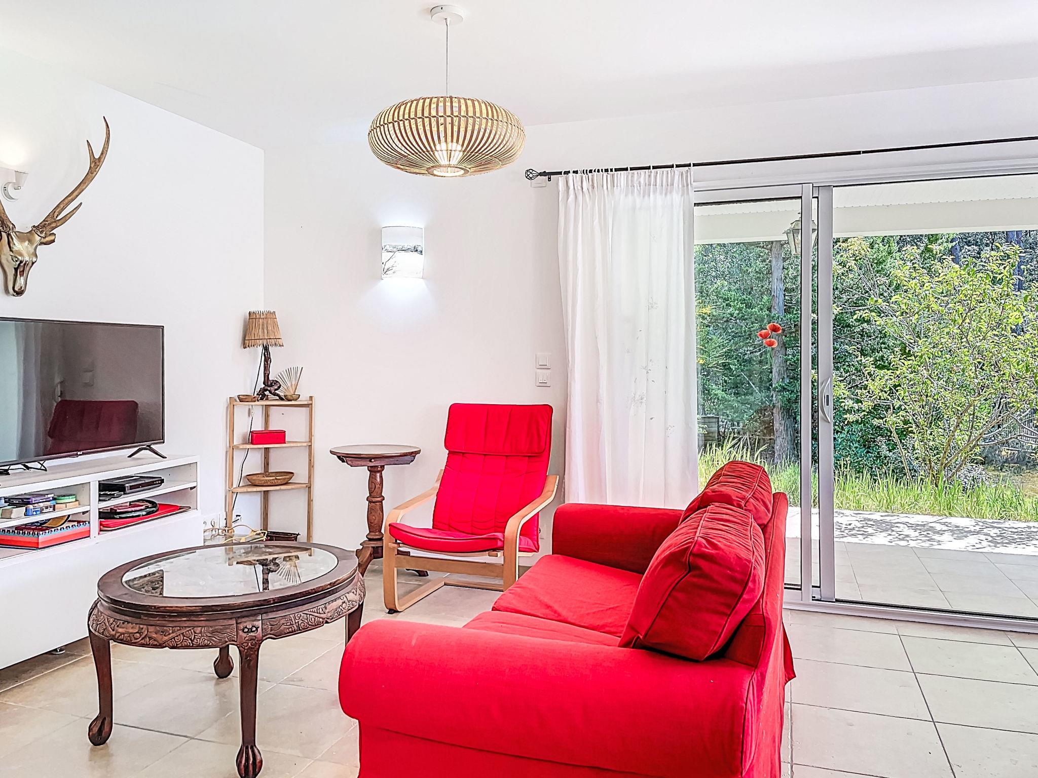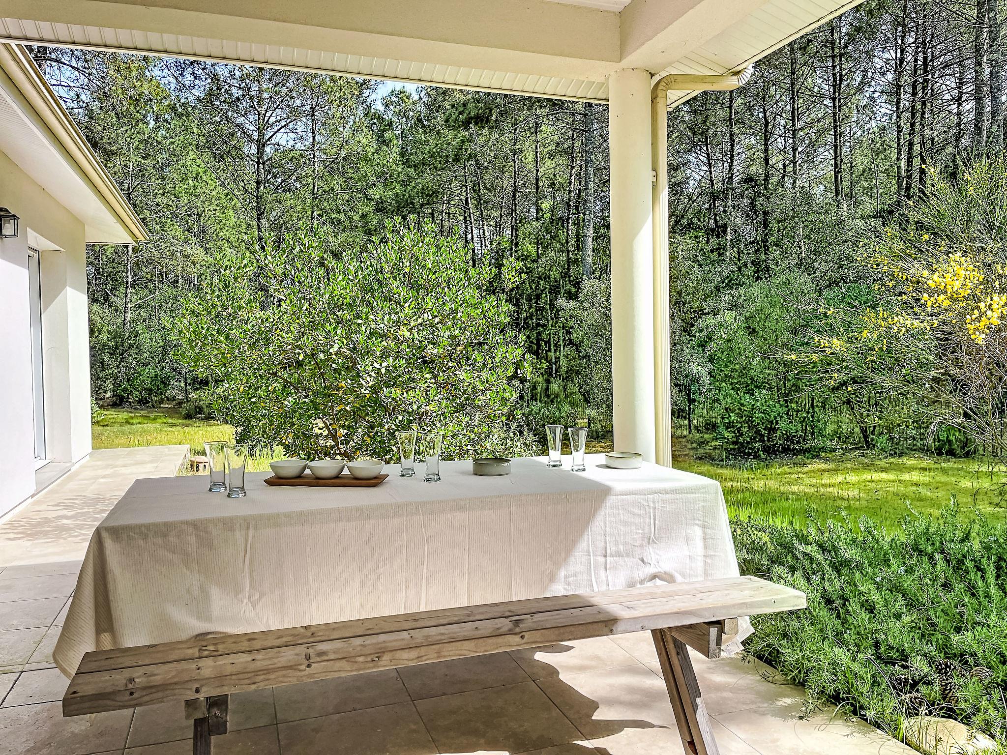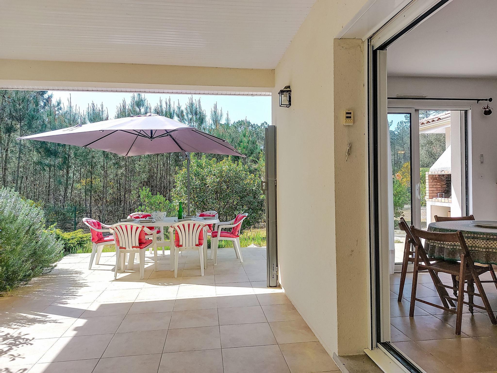 Longarisse 10 km from Lacanau-Océan: Beautiful single-family house "Hibiscus 10", surrounded by trees. In the district of longarisse, traffic calmed area, 10 km from the sea, 200 m from the lake, 200 m from the beach, in a cul-de-sac, south facing position. For shared use: property 1'000 m2, beautiful garden to relax. Terrace (40 m2), barbecue house, parking (for 4 cars). Shop 10 km, restaurant 2 km, bus stop "longarisse" 900 m, lake de lacanau 200 m. Golf course (18 hole) 5 km, surf school 10 km, sailing school 2 km, tennis 4 km, minigolf 10 km, fishing possibilities 200 m. Nearby attractions: Dune du Pilat 90 km, Bordeaux 60 km, Margaux 65 km, Ferret 48 km. Well-known lakes can easily be reached: Moutchic 2 km, Maubuisson 15 km. Hiking paths: vélodyssée 5 km, st jacques de Compostelle 5 m. Please note: suitable for families. Groups of teenagers on request only.
