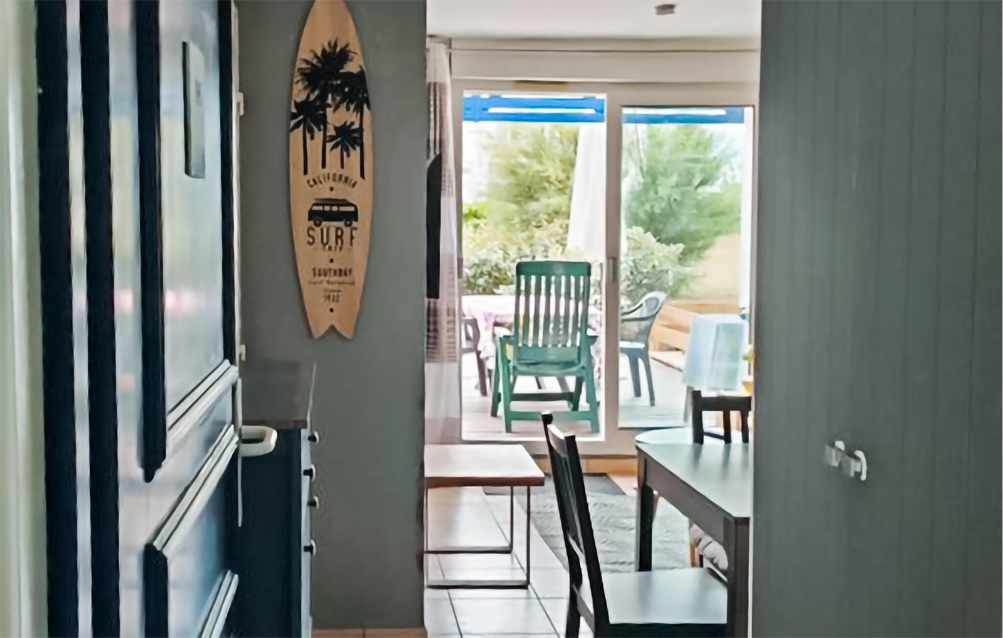 Åbn terrassedøren, og lad jeres feriedag begynde på landet. Slap af på liggestolen eller sid sammen ved siddeområdet under parasollen. Træterrassen er omgivet af velholdt grønt og byder på masser af fred og ro. Nyd det fælles poolområde med dets mange liggestole til solrige eftermiddage eller en forfriskende dukkert. Komplekset er ideelt for familier, par eller alle, der ønsker at opleve den sydlige atmosfære ved den franske Atlanterhavskyst.