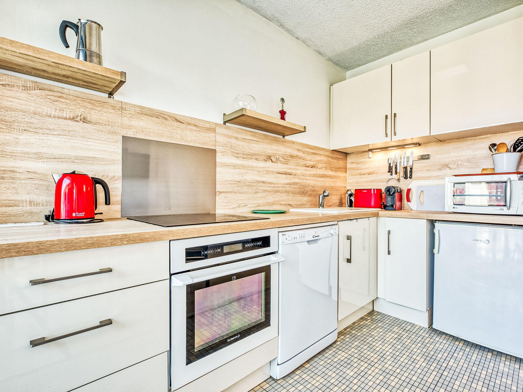 2-room apartment 42 m2 on 3rd floor. Living/dining room with 1 double sofabed (140 cm, length 190 cm), TV. 1 room with 1 french bed (180 cm, length 190 cm). Open kitchen (oven, dishwasher, 4 ceramic glass hob hotplates, toaster, kettle, microwave, electric coffee machine, Capsules for coffee machine (Krups Nespresso) extra). Shower, sep. WC. Electric heating. Balcony 10 m2, north facing position and, east facing position. Facilities: washing machine, dryer. Internet (WiFi, free). Garage. Please note: non-smokers only. Smoke alarm. Offer by a private individual according to Art. 155, IV of CGI.