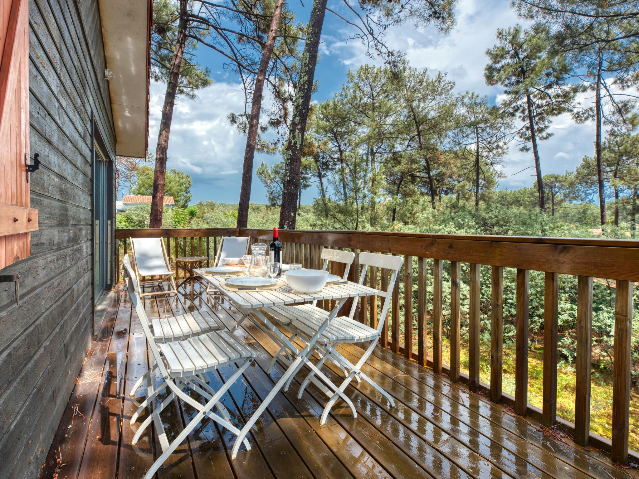 Chalet "Picasso". 2 km from the centre, 1 km from the sea, 1 km from the beach. Private: property 400 m2. Shop 1 km, supermarket 850 m, restaurant 1 km, bus stop "Salle l'Escoure Océan" 1 km, sandy beach 600 m. Golf course (18 hole) 4 km, tennis 3 km, riding stable 15 km.