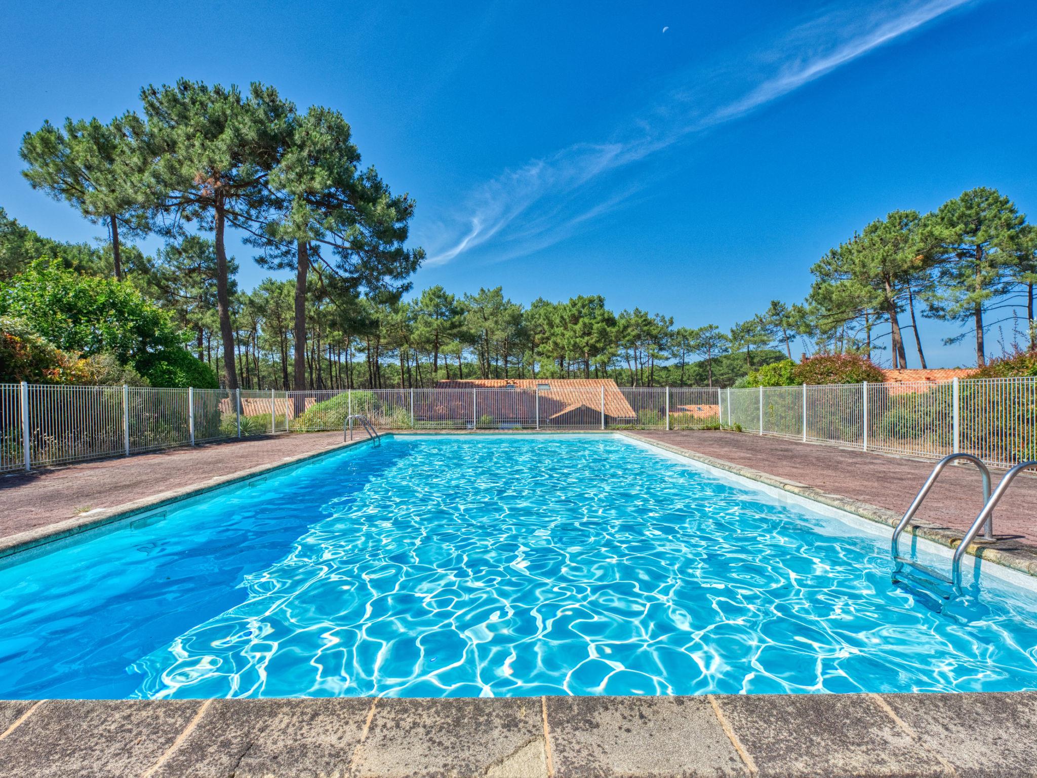 Residence "Jardins de la Pinède". 1.7 km from the centre, 5 km from the lake. For shared use: swimming pool (12 x 6 m, depth 150 cm, seasonal availability: 15.Jun. - 15.Sep.). Parking. Shop 1.7 km, supermarket 1.7 km, restaurant 1.7 km, bus stop "Marie Curie" 1.1 km, sandy beach 1.7 km. Golf course (18 hole) 800 m, tennis 300 m, riding stable 15 km.