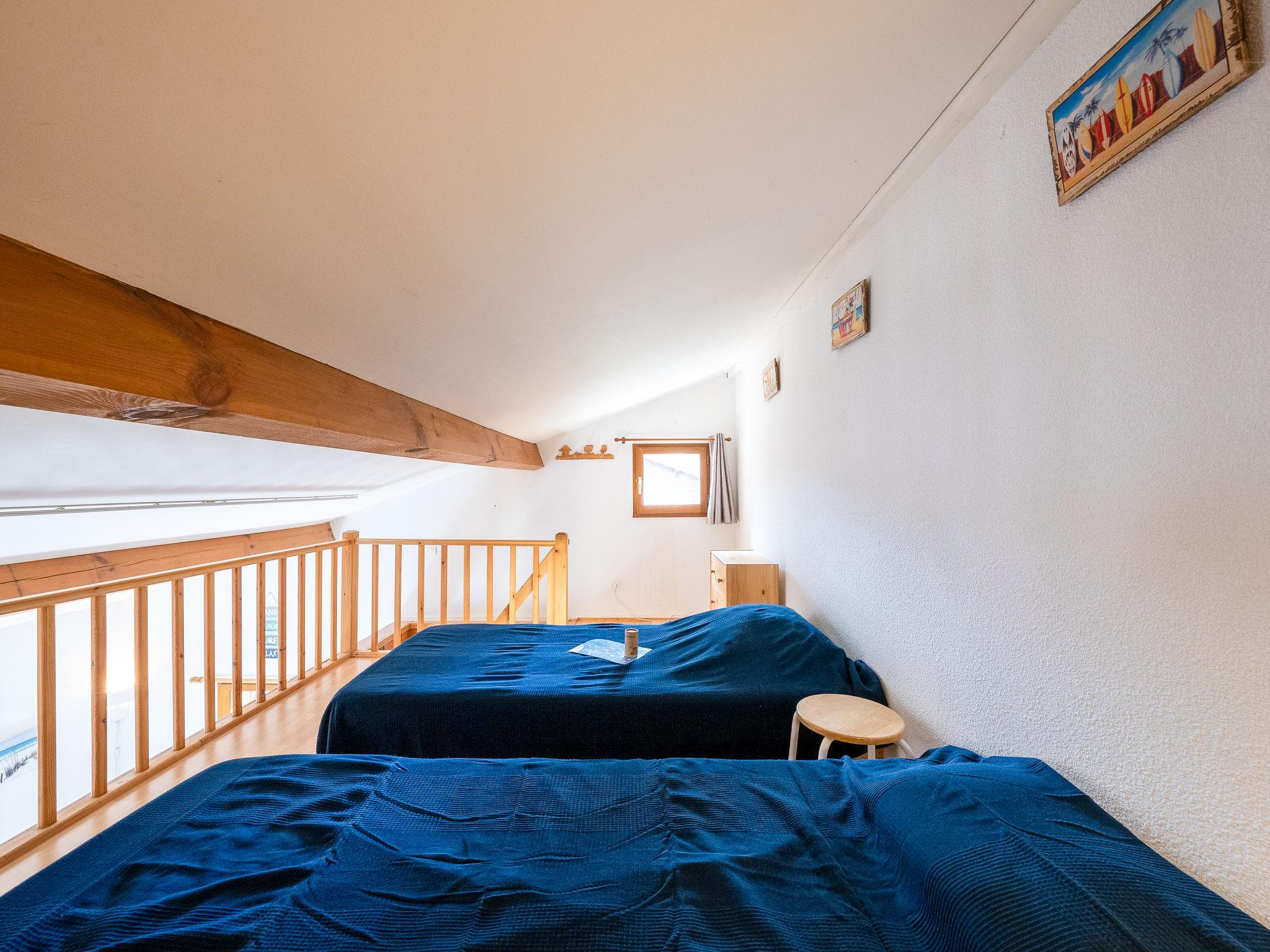 2-room terraced house 32 m2 on 2 levels. Living/dining room with TV. Exit to the terrace. 1 room with 1 french bed (140 cm, length 190 cm). Kitchenette (2 hot plates, combination microwave). Shower/WC. Electric heating. Upper floor: (steep stair) gallery, with sloping ceilings, ceiling height 190 - 80 cm with 2 beds (90 cm). Terrace roofed, south-east facing position, large terrace, east facing position. Terrace furniture, electric barbecue, deck chairs (1). Facilities: washing machine. Internet (WiFi, extra). Parking space n 69. Please note: non-smokers only. Smoke alarm. Due to water restrictions implemented in response to drought conditions in certain regions of France, please be aware that the swimming pool may remain closed until the legal restrictions allowing the filling and replenishment of water in private swimming pools and ponds are lifted. For official information on measures to limit or suspend water usage in France, please refer to Propluvia - Accueil (developpement-durable.gouv.fr). Instead of an enclosed bedroom, some sleeping areas are located in an open-plan area (gallery, alcove, etc.).