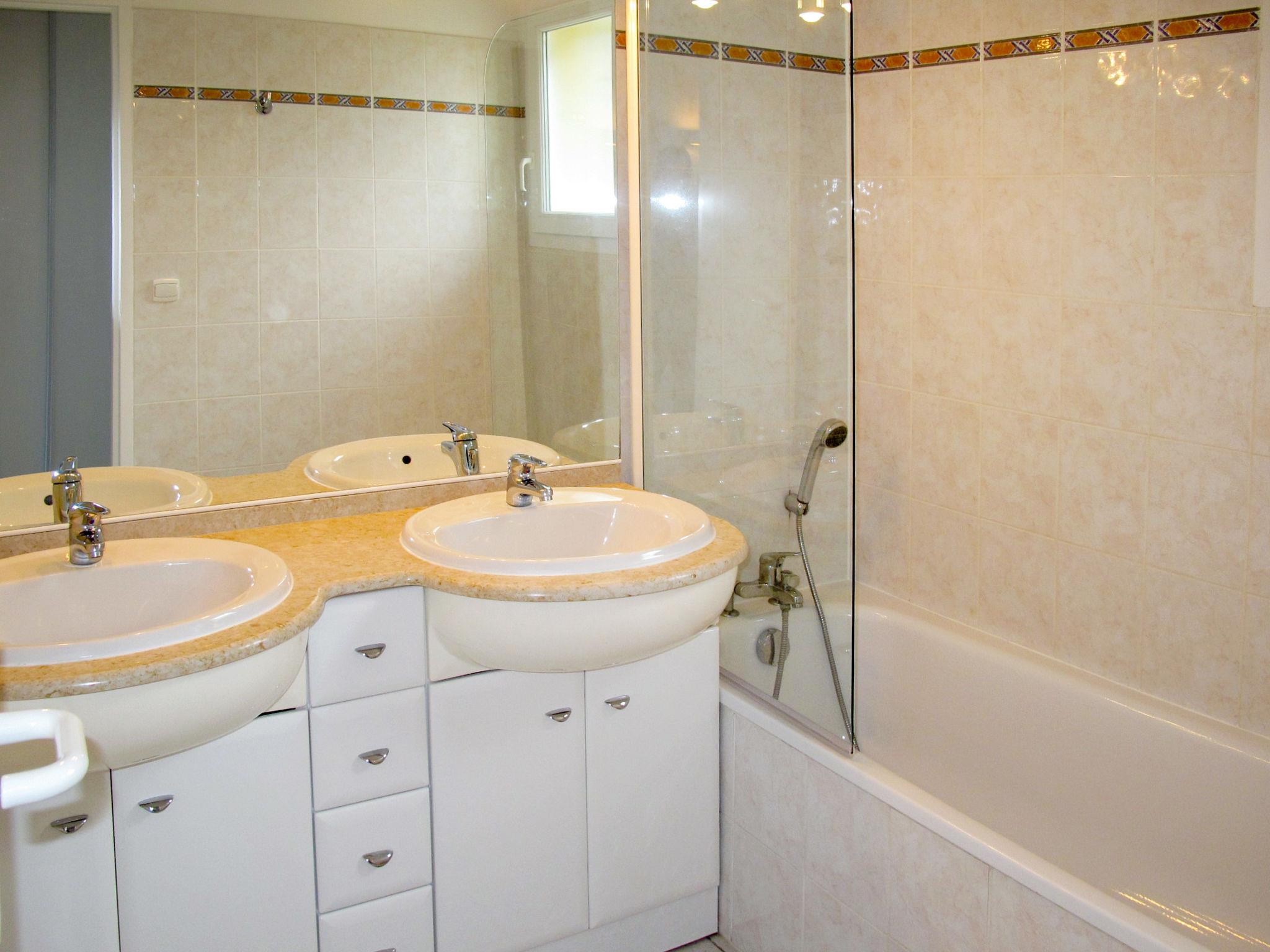 "Eden Parc Golf de l'Ardilouse V4I", 3-room villa 70 m2. Beautiful furnishings: living/dining room with panoramic window with dining table and satellite TV (flat screen). Exit to the terrace. 1 room with 1 french bed (160 cm, length 200 cm). Exit to the terrace. 1 room with 2 beds (90 cm, length 190 cm). Exit to the terrace. Open kitchen (oven, dishwasher, 4 ceramic glass hob hotplates, toaster, kettle, microwave, freezer, electric coffee machine) with bar. Bathroom, sep. WC, double hand-basin. Electric heating. Terrace roofed. Terrace furniture, barbecue (portable), deck chairs (2), box-room. Facilities: washing machine, dryer, children's high chair, baby cot (extra). Please note: non-smoking house. Maximum 2 pets/ dogs allowed. Smoke alarm.