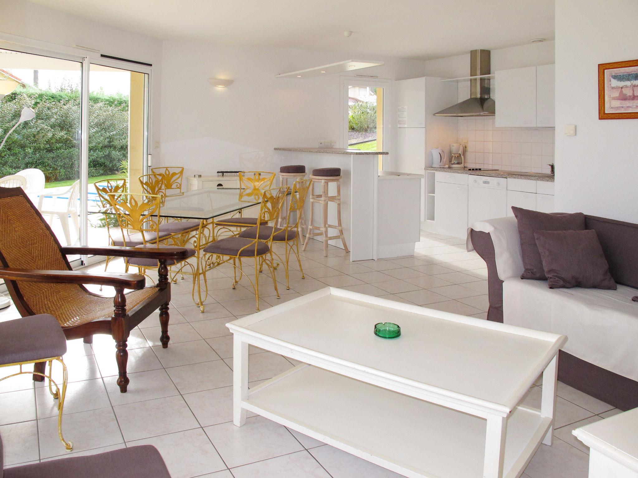Resort "Eden Parc Golf de l'Ardilouse". 3 km from the centre of Lacanau-Océan, 12 km from the centre of Lacanau, 55 km from the centre of Bordeaux, 3.5 km from the sea. For shared use: property with trees. Private: natural state property 700 m2, swimming pool (8 x 4 m, seasonal availability: 16.Apr. - 11.Nov.). In the complex: WiFi (extra). Parking at the house on the premises. Shop 3 km, bus stop "Marie Curie" 2.6 km, sandy beach 3.5 km, lake de Lacanau 3.5 km. Golf course (18 hole) 500 m. Please note: the photograph shows a typical example. The holiday properties may differ in living space, floorplan, equipment and furnishing.