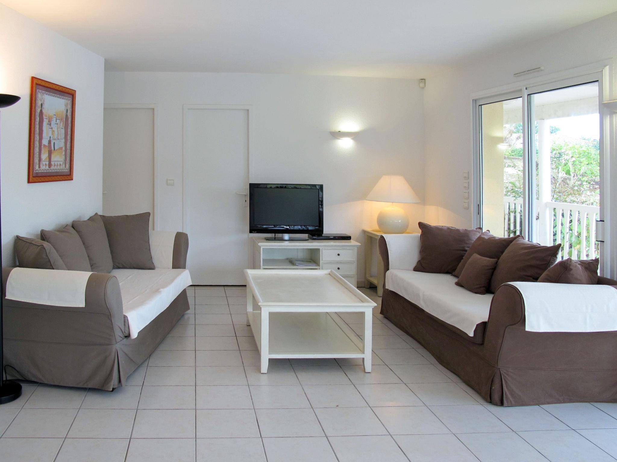 "Eden Parc Golf de l'Ardilouse V8I", 5-room villa 110 m2. Beautiful furnishings: living/dining room with panoramic window with dining table and satellite TV (flat screen). Exit to the terrace. 3 rooms, each room with 2 beds (90 cm, length 190 cm). 1 room with 1 french bed (160 cm, length 200 cm). Open kitchen (oven, dishwasher, 4 ceramic glass hob hotplates, toaster, kettle, microwave, freezer, electric coffee machine) with bar. Bathroom, shower, 2 sep. WC's, double hand-basin. Electric heating. Terrace roofed. Terrace furniture, barbecue (portable), deck chairs (4), box-room. Facilities: washing machine, dryer, children's high chair, baby cot (extra). Please note: non-smoking house. Maximum 2 pets/ dogs allowed. Smoke alarm.