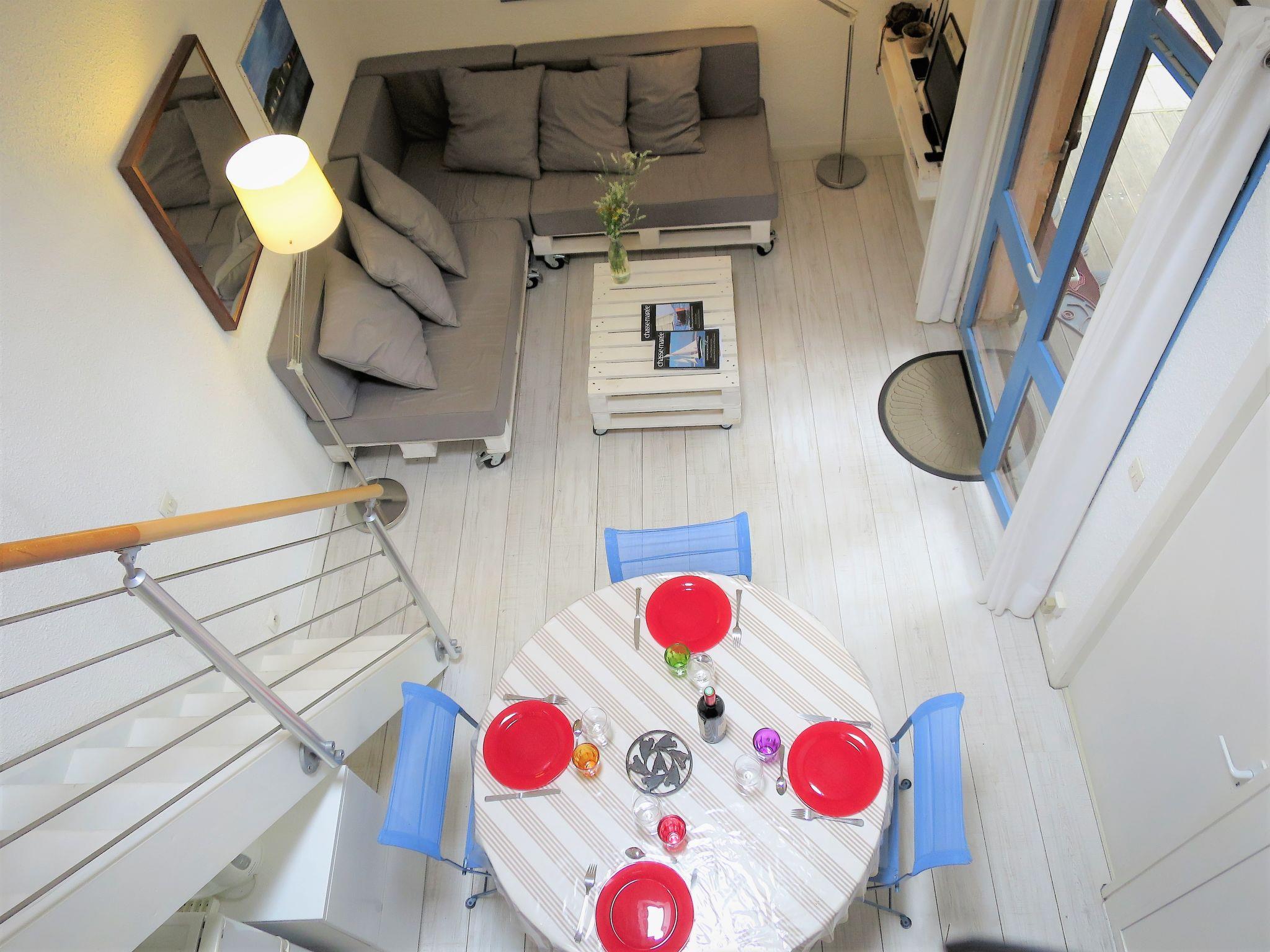 3-room terraced house 50 m2 on 2 levels. Object suitable for 4 adults + 1 child. Cosy furnishings: living/sleeping room with 1 sofabed (80 cm), dining table, satellite TV, radio and CD-player. Exit to the terrace. 1 room with 1 french bed (160 cm). Open kitchen (mini-oven, dishwasher, 4 ceramic glass hob hotplates, toaster, kettle, microwave, freezer, electric coffee machine). Shower/WC. Upper floor: open gallery with sloping ceilings with 1 sofabed (120 cm). 1 room with sloping ceilings with 1 french bed (140 cm). Electric heating. Wooden floors. Terrace partly roofed. Terrace furniture, electric barbecue, deck chairs (4), box-room. Facilities: washing machine, iron, children's high chair, baby cot (extra). Internet (WiFi, free). Please note: non-smokers only. Maximum 1 pet/ dog allowed. Smoke alarm. Bed layout is flexible. There are more sleeping options available than the maximum number of people allowed which may, however, not be exceeded. Instead of an enclosed bedroom, some sleeping areas are located in an open-plan area (gallery, alcove, etc.).