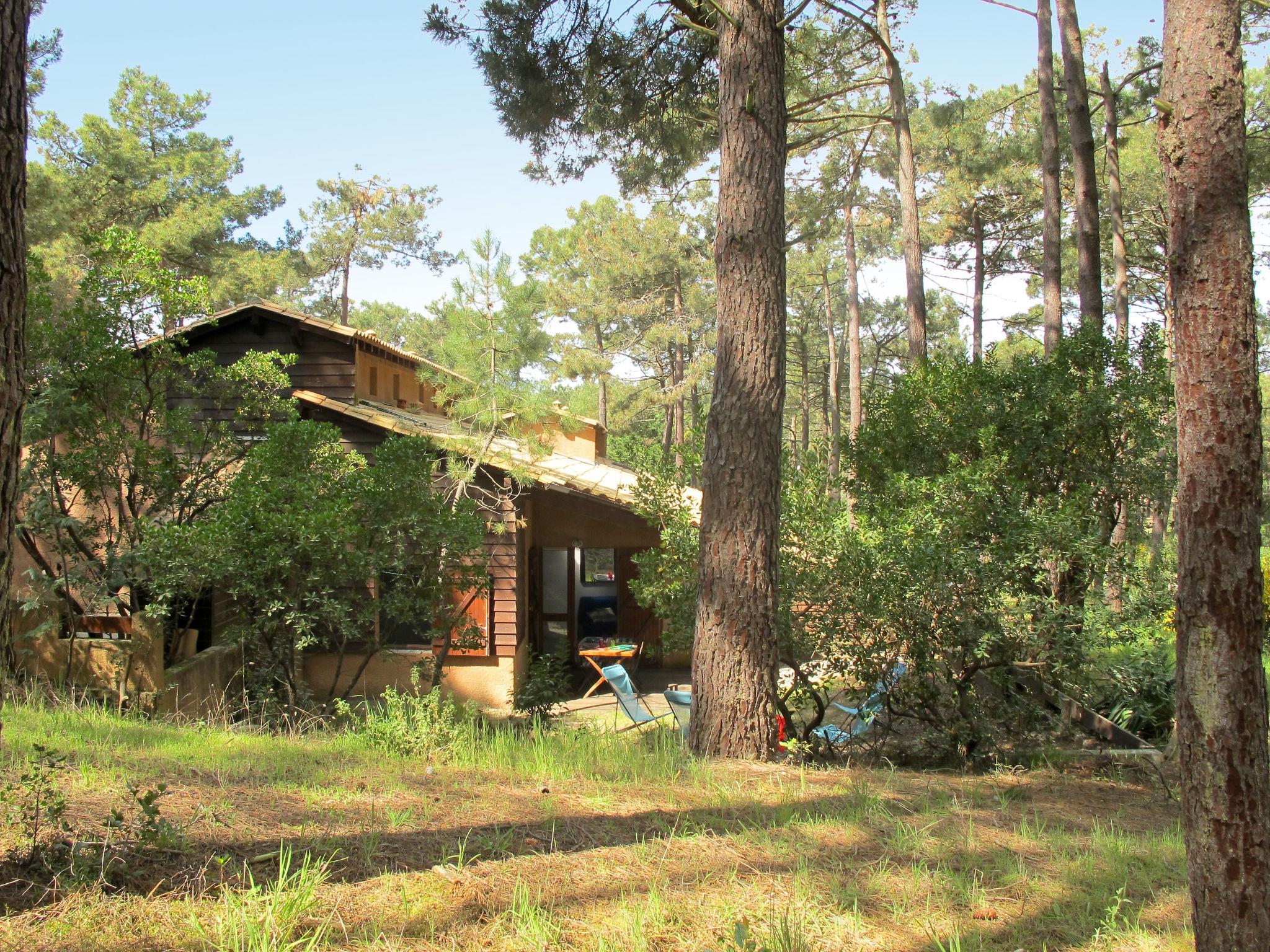 Terraced house "Les maisons de la forêt", surrounded by trees. 1.5 km from the centre of Lacanau-Océan, 10 km from the centre of Lacanau-Ville, 57 km from the centre of Bordeaux, 1.5 km from the sea, 4 km from the lake. Private: property 100 m2 with trees, parking at the house at 100 m. Supermarket 1.5 km, bus stop "Marie Curie" 900 m, sandy beach "Lacanau-Océan" 1.5 km, bathing lake "Lac de Lacanau, Le Moutchic" 4 km. Golf course (18 hole) 1.5 km.