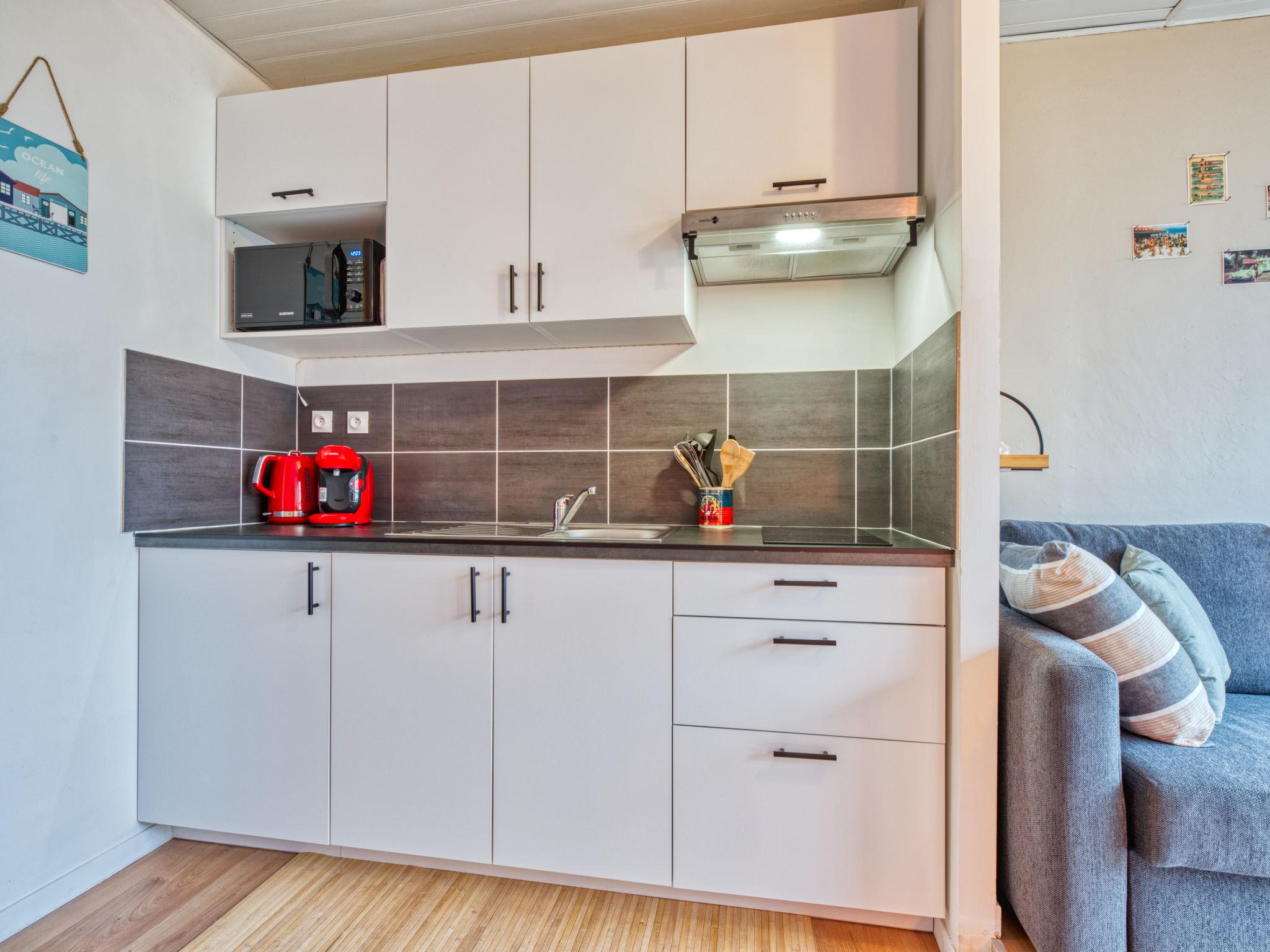 1-room studio 20 m2, on the ground floor. Comfortable furnishings: living/dining room with 1 double sofabed (140 cm, length 190 cm), TV (flat screen). Kitchen (2 induction hot plates, toaster, kettle, microwave, electric coffee machine, Capsules for coffee machine (Tassimo) extra). Shower/WC. Electric heating. Partial view of the ocean. Facilities: Internet (WiFi, extra). Please note: non-smokers only. Smoke alarm. Offer by a private individual according to Art. 155, IV of CGI.