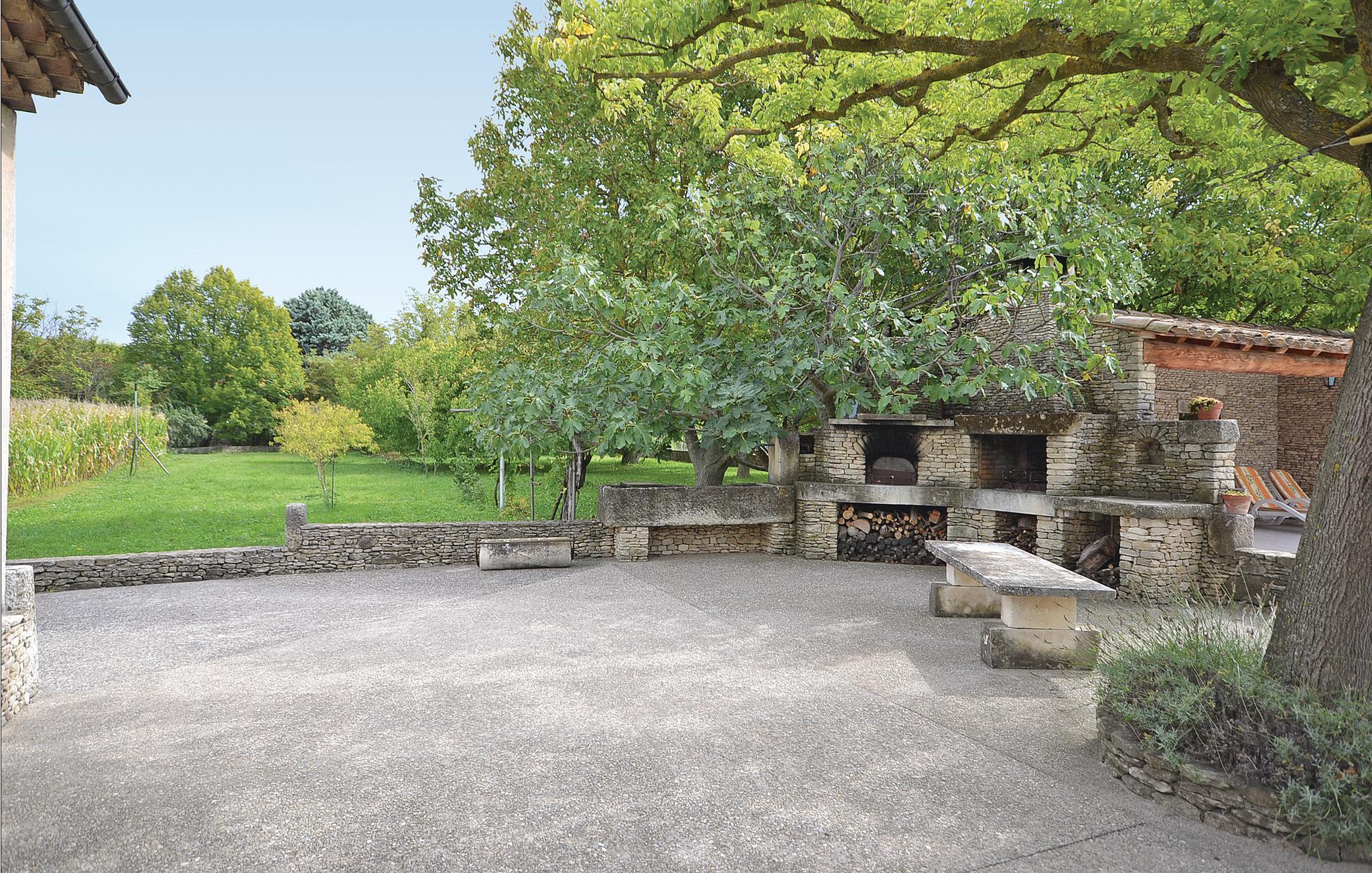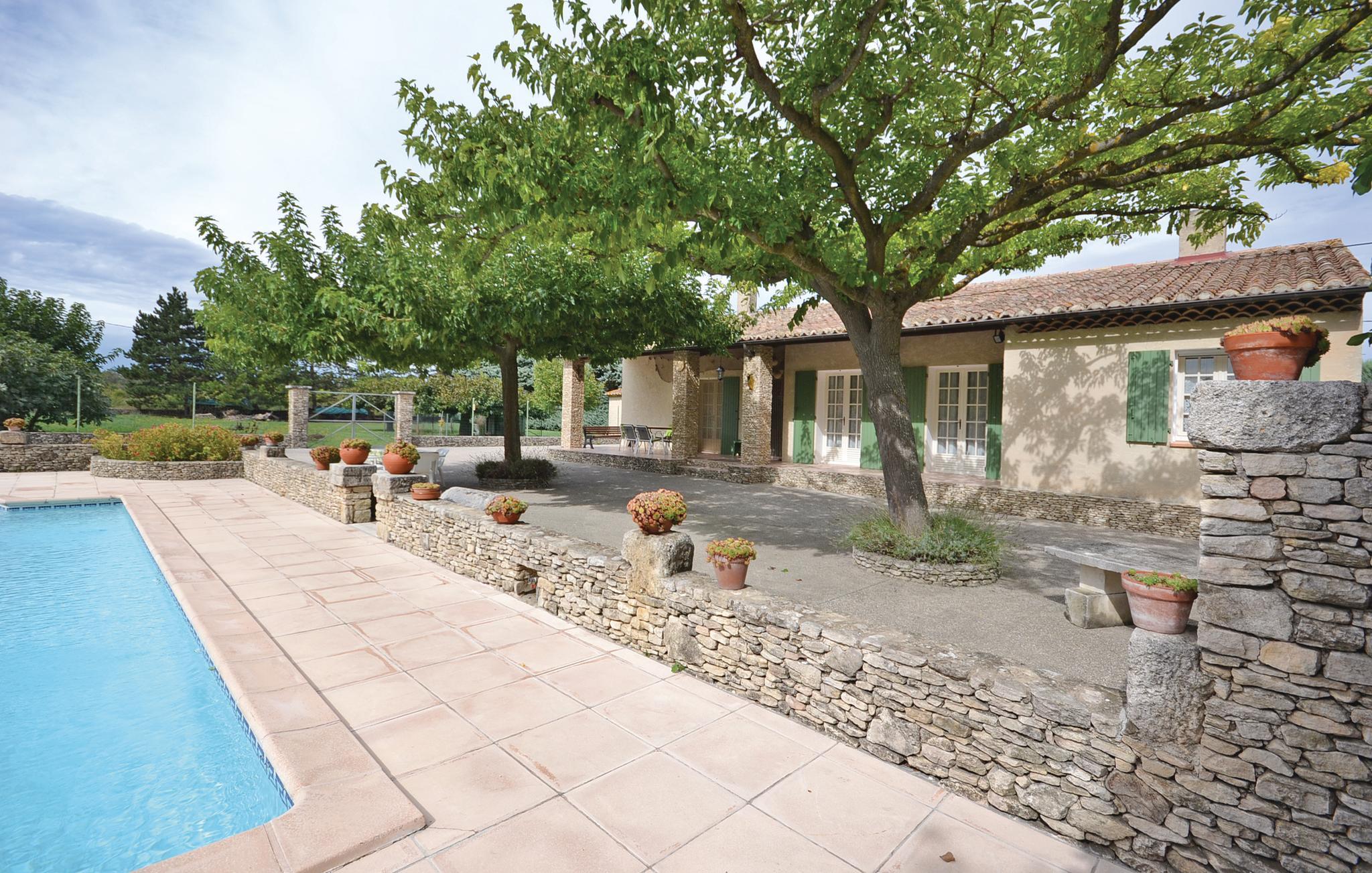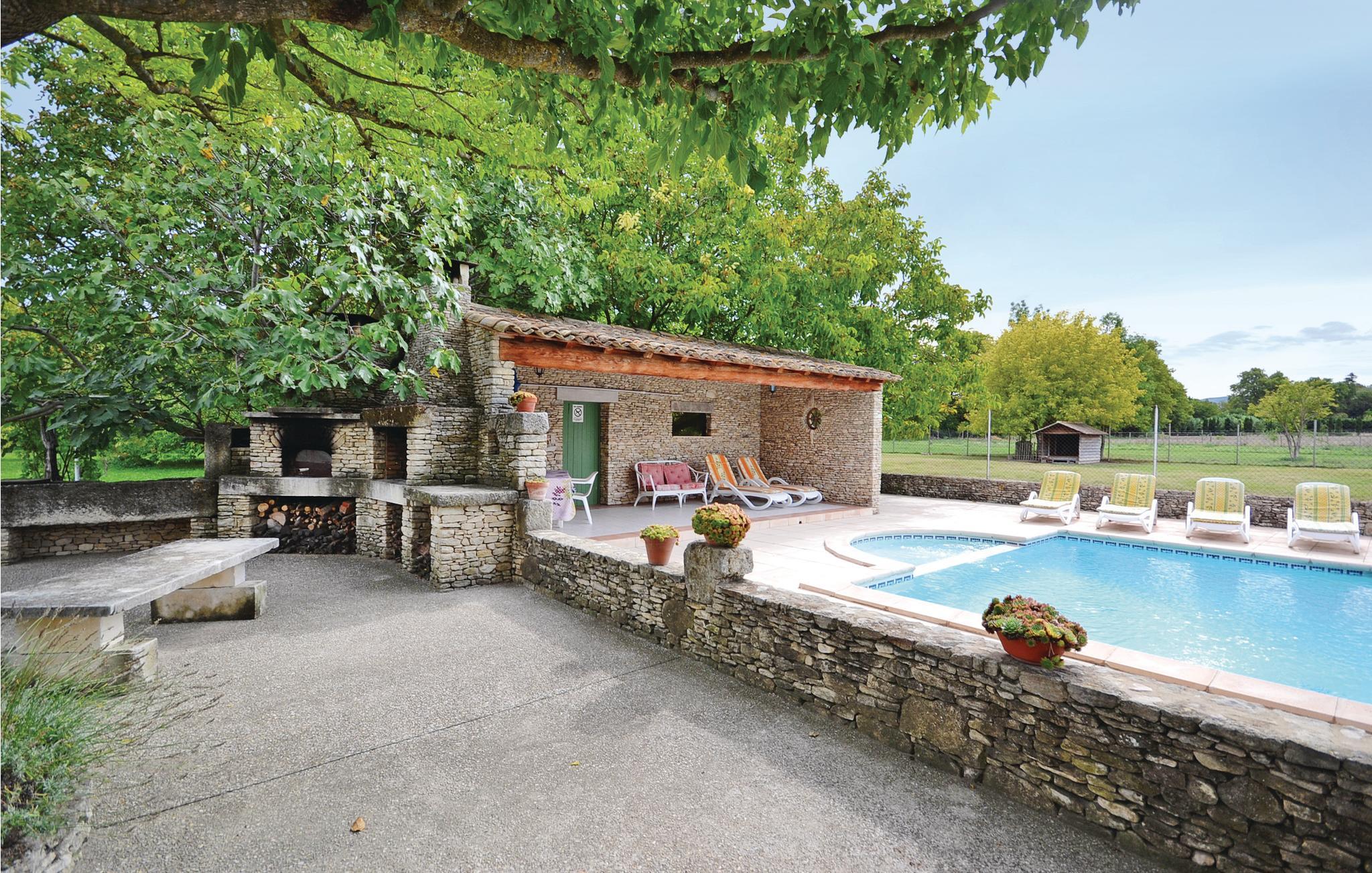 Dette feriehus er bygget af den lokale honningfarvede sten. Det ligger på en stor grund, lige uden for den dejlige lille by Lagnes. Lagnes har enkle butikker, restauranter og barer. Husets indretning er komfortabel og typisk. I kan åbne køkkenet mod spiseterrassen, der ligger langs hele husets forside. Køb lokale produkter, lav dejlig mad af dem, og spis i det fri. I må plukke kirsebær, nektariner og figner på grunden. I har udsigt fra terrassen over poolen med saltvand. I poolen er der et fladt område til børn. Spørg efter børnemøbler. Der er en skråning ned mod floden på grunden 70 m fra huset, og der er ikke noget hegn.