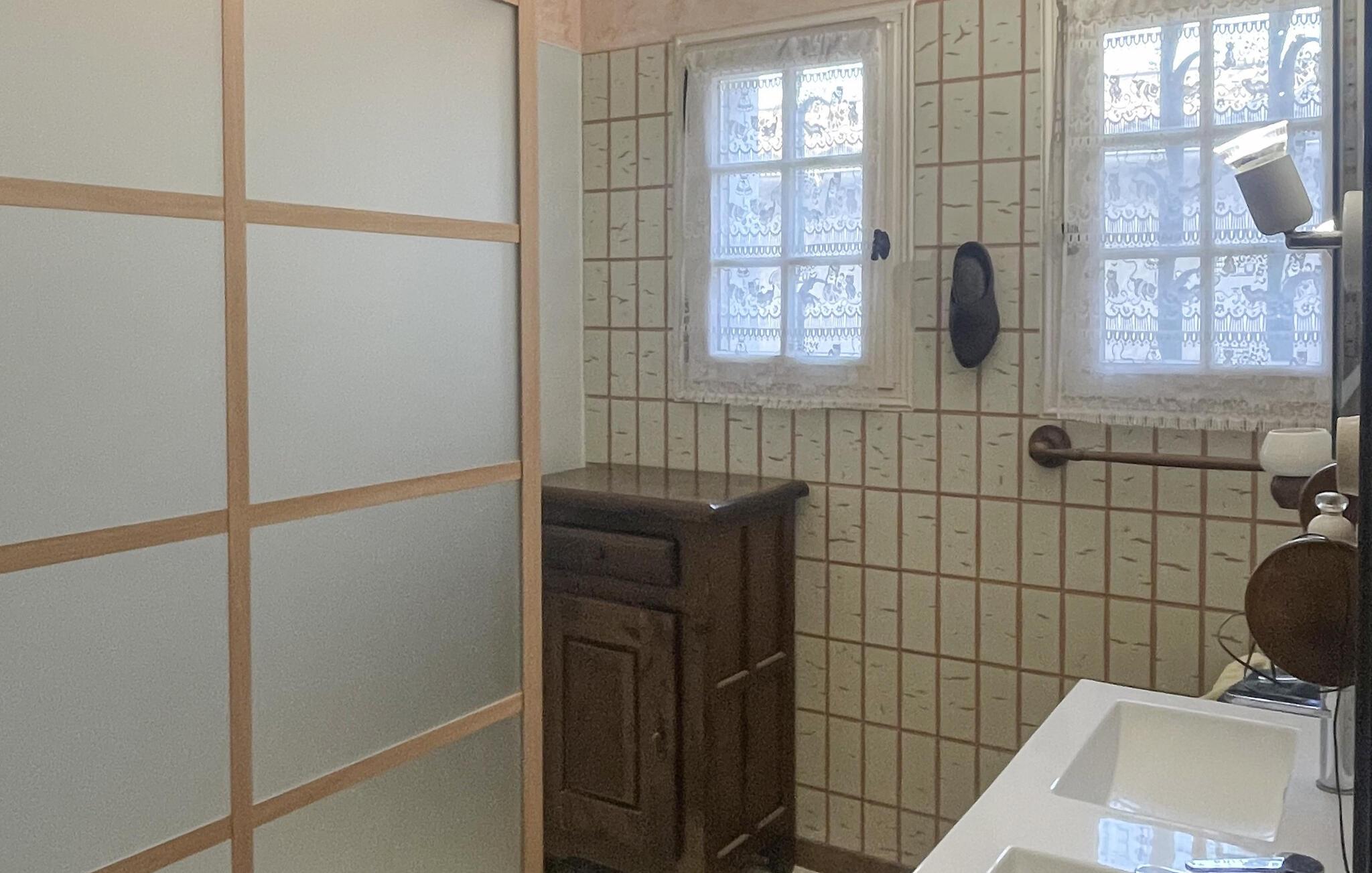 Badeværelse (nr. 1) - Varmt og koldt vand. Bruser og badekar