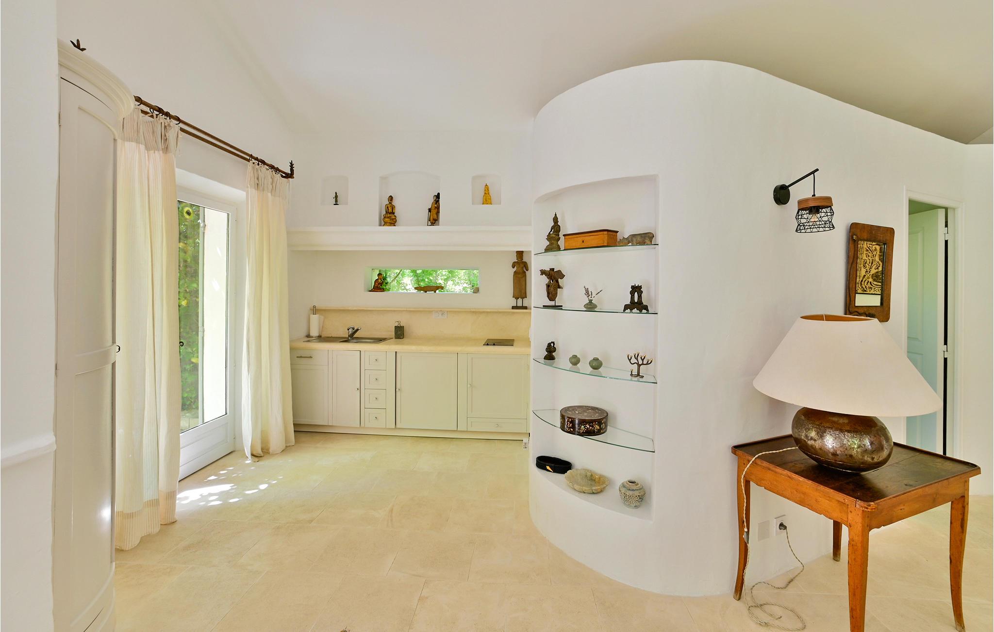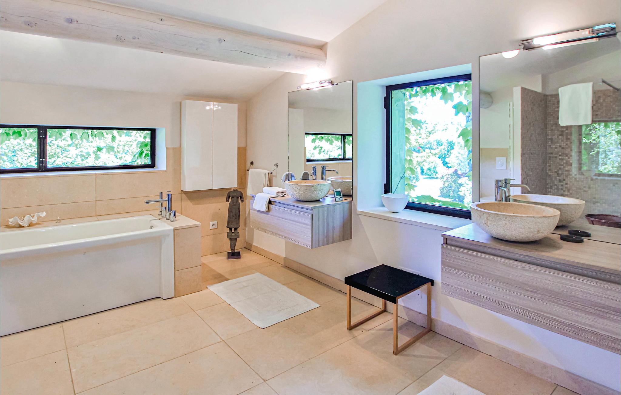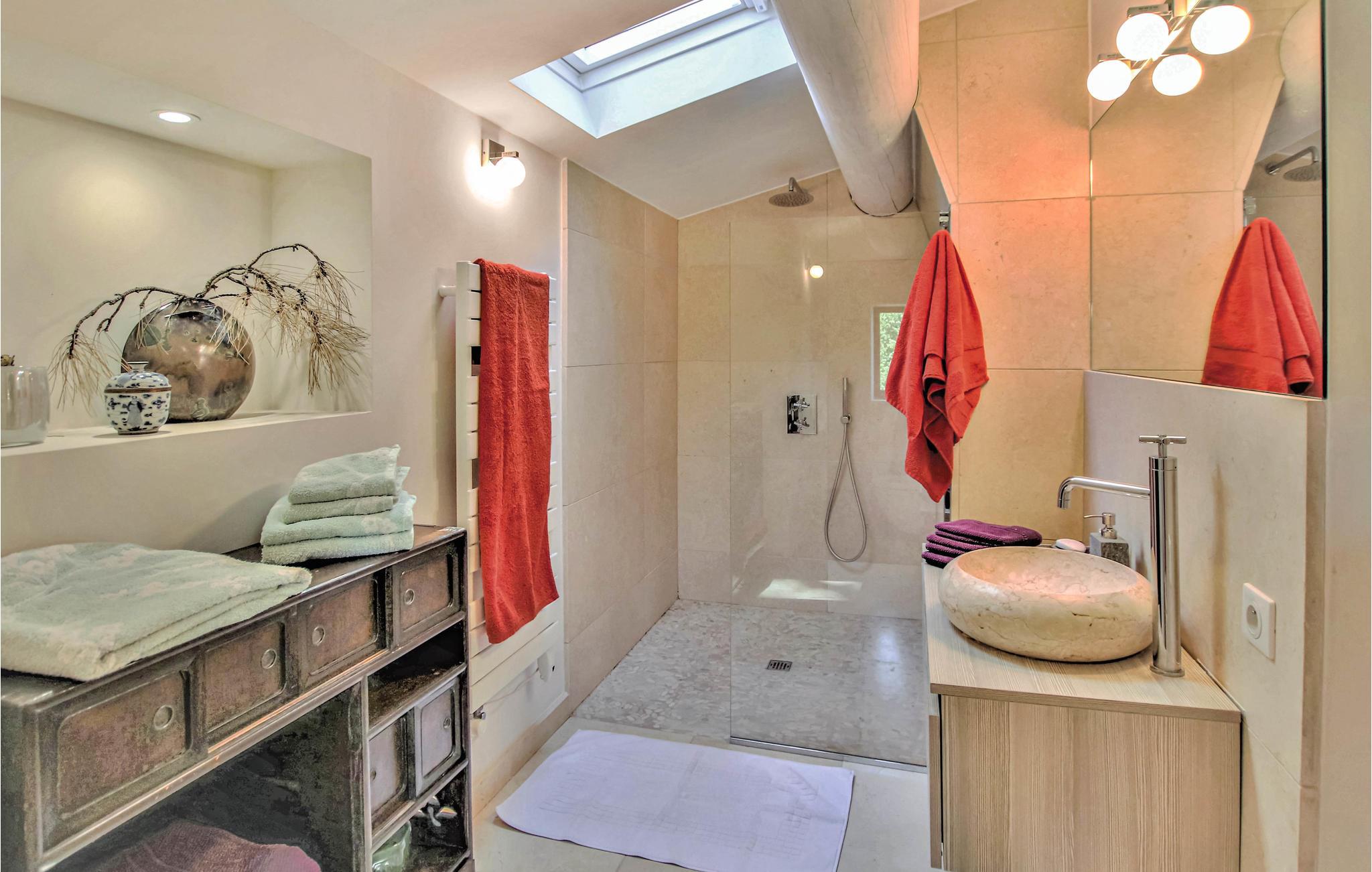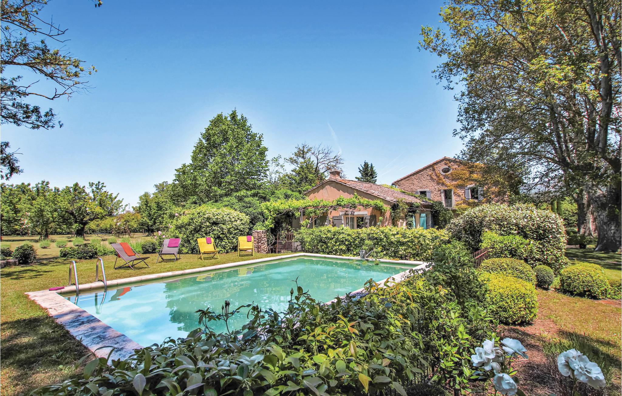 I hjertet af Luberon i Vaucluse, ligger dette feriehus med privat pool. Det var oprindeligt en mølle og ligger omgivet af natur, i en kæmpestor yppig park med en dejlig frugthave. Som tegn på boligens oprindelige funktion er der en brønd og en lille kanal på bagsiden af ejendommen. Hovedbygningen er forbundet til et lille fortryllende anneks med en smuk terrasse hvor der er sommerkøkken der også fører til den dejlige pool, der er helt ugenert. Huset er med møbler og indretning af høj kvalitet, de høje franske lofter og store rum giver en helt autentisk stemning. Dette udsædvanlige feriemål er lige spændende for familier, par og vennegrupper. Beliggenheden mellem Alpillerne og Aixregionen, i nærhedne af L'Isle sur la Sorgue, den berømte vinrute Rhone, med vinslotte som Gidondas, Vacqueyras og Châteauneuf du Pape. Besøg også Luberons certificerede byer Gordes, Lacoste, Bonnieux og Ménèbes. Vandladet Wave Insel Monteux, er en stor oplevelse for alle vandhunde, ligesom forlystelsesparken Park Spirou, bygget om comic-universet Splint & Co er oplagt til børn og fans. I kan glæde jer til at smage aiolier, eller "croustade à la viande", kandiserede frugter, solmoden frugt og grønt, honning og kvalitetsolier.
