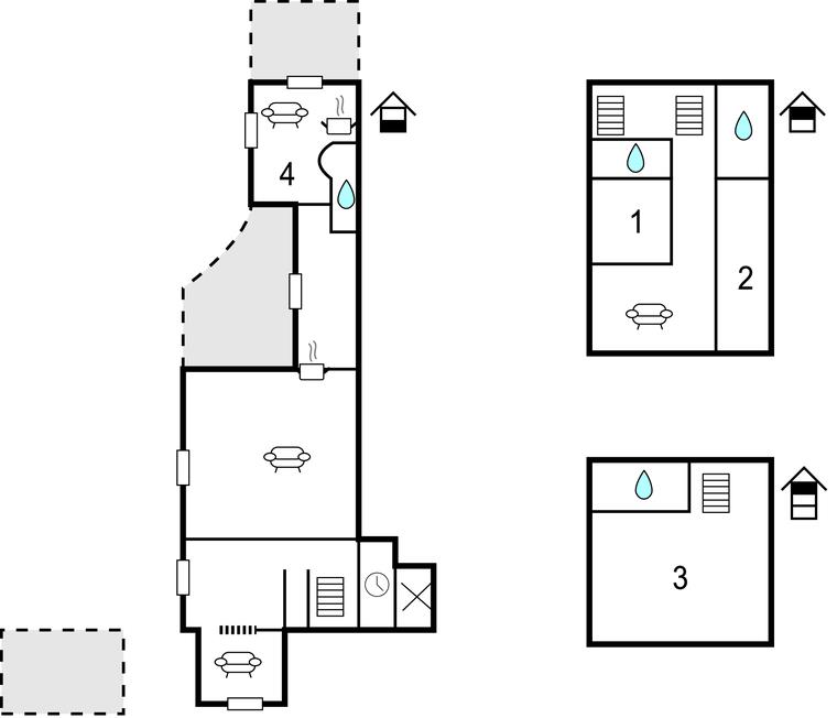Soveværelse (nr. 3) - 1 Soveplads. (Enkeltseng(e)). 2 Sovepladser. (Dobbeltseng(e)).
