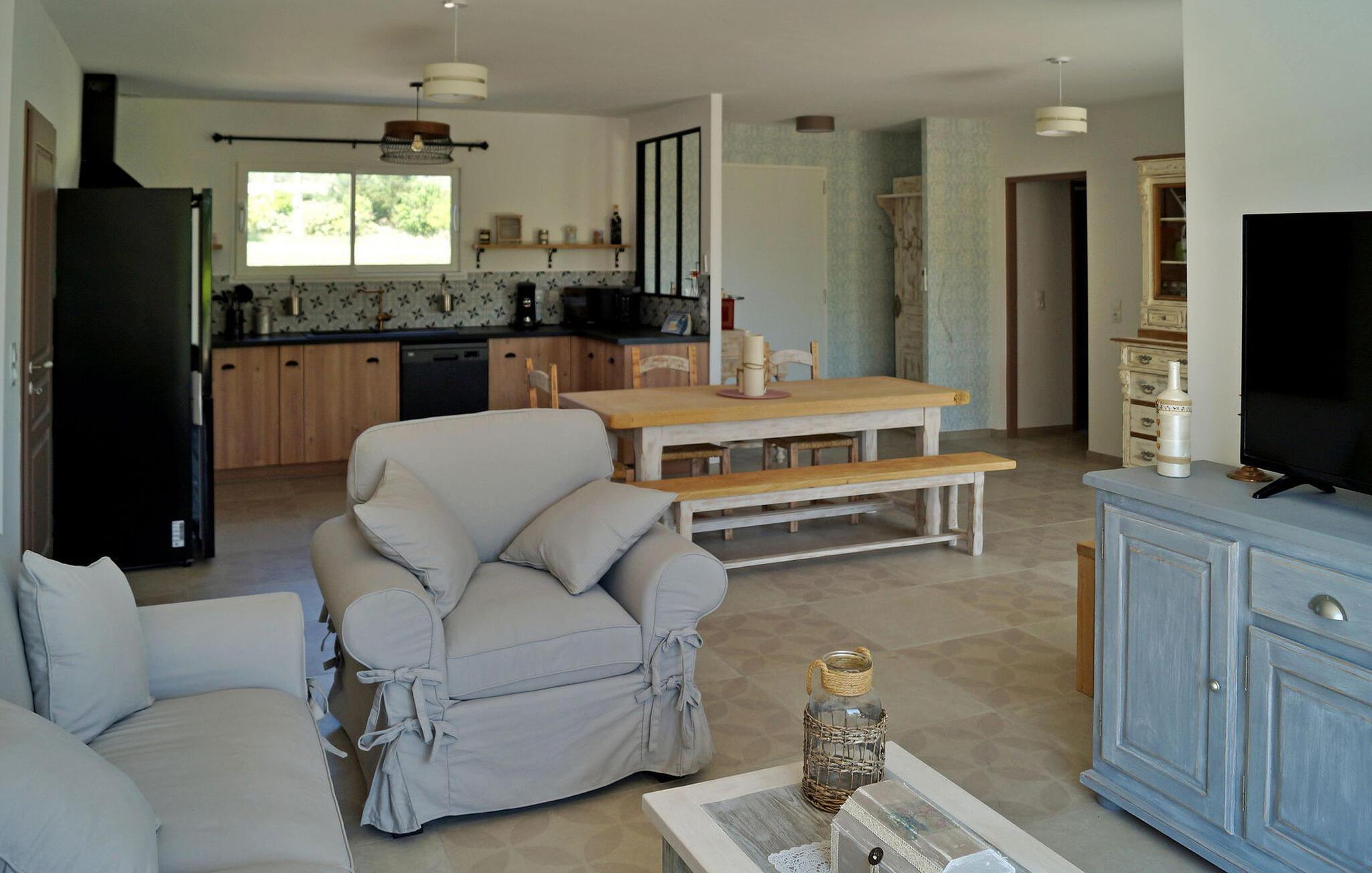 Denne villa i Lagorce, det sydlige Ardèche, kan prale af et rummeligt opholdsområde med karnapper, et åbent køkken, spisestue og et opholdsområde med underholdningsfaciliteter. Alle værelser nyder godt af gulvvarme/køling. Udendørs er der en overdækket terrasse med spiseplads og grill/plancha samt en træterrasse med overblik over den 8m x 4m sikrede swimmingpool. Det lukkede område byder på et bordtennisbord, en gynge og et petanqueområde. Det er også muligt at spille petanque foran husets indgang (boules forudsat) Bemærk: Villaen er beliggende på ejerens grund, som bor på stedet. Gæsterne kan nyde udendørs aktiviteter i nærheden, såsom hulebesøg, kanosejlads, mountainbiking, canyoning og vandreture. Villaen ligger i Lagorce, i det sydlige Ardèche mellem Vallon Pont d'Arc og Ruoms. Gorges de l'Ardèche er mindre end 15 minutter væk. Chauvet-grotten, Aven d'Orgnac, Cocalière er meget tætte grotter. 25 minutter fra Aubenas, 35 minutter fra de termiske bade i Vals les Bains, 1 time fra Monts Ardéchois-plateauet.