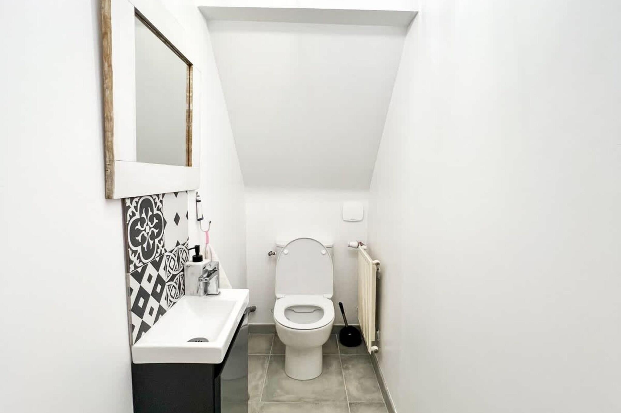 Ground floor: (Living room(TV, fireplace), Kitchen(dining table, electric kettle, toaster, coffee machine, oven, microwave, dishwasher, fridge, freezer, Blender, dishes and cutlery, Cooking basics, Baking sheet, Wine glasses), bedroom(double bed), bathroom(shower, washbasin, toilet, hairdryer), toilet) On the 1st floor: (bedroom(double bed, Room-darkening shades), Bedroom with bathroom(double bed, shower, washbasin, toilet), toilet) Bed Linen, Hot Water, Internet Access DSL, Wardrobe, garage, First Aid, Indoor play area, tumble dryer, washing machine, heating, garden, garden furniture, parking, high chair, iron, plancha grill, crib(free), Towels/Sheets (Incl.), Essentials, Dedicated workspace, Long term stays allowed, Near Ocean, Rural, Town