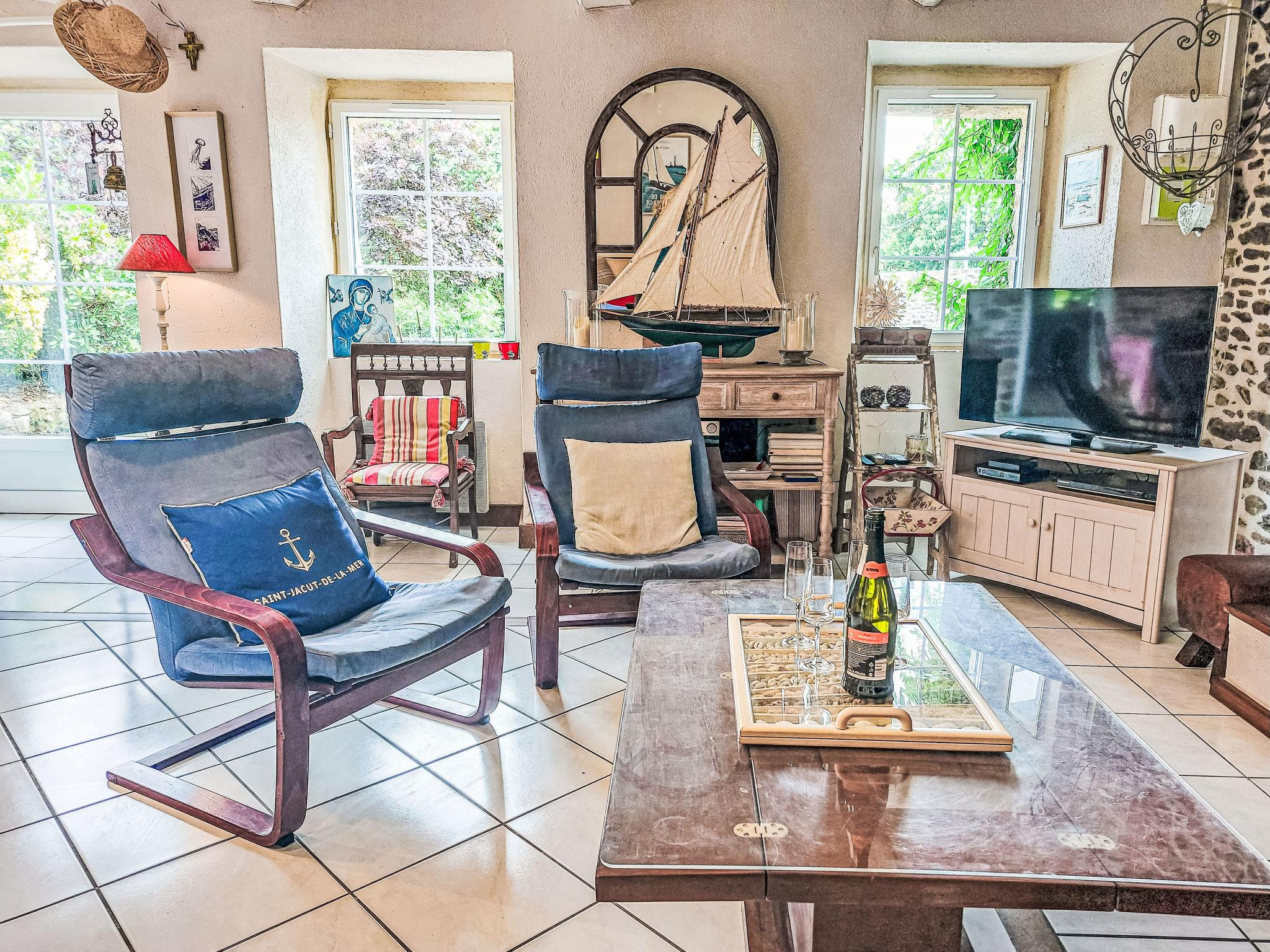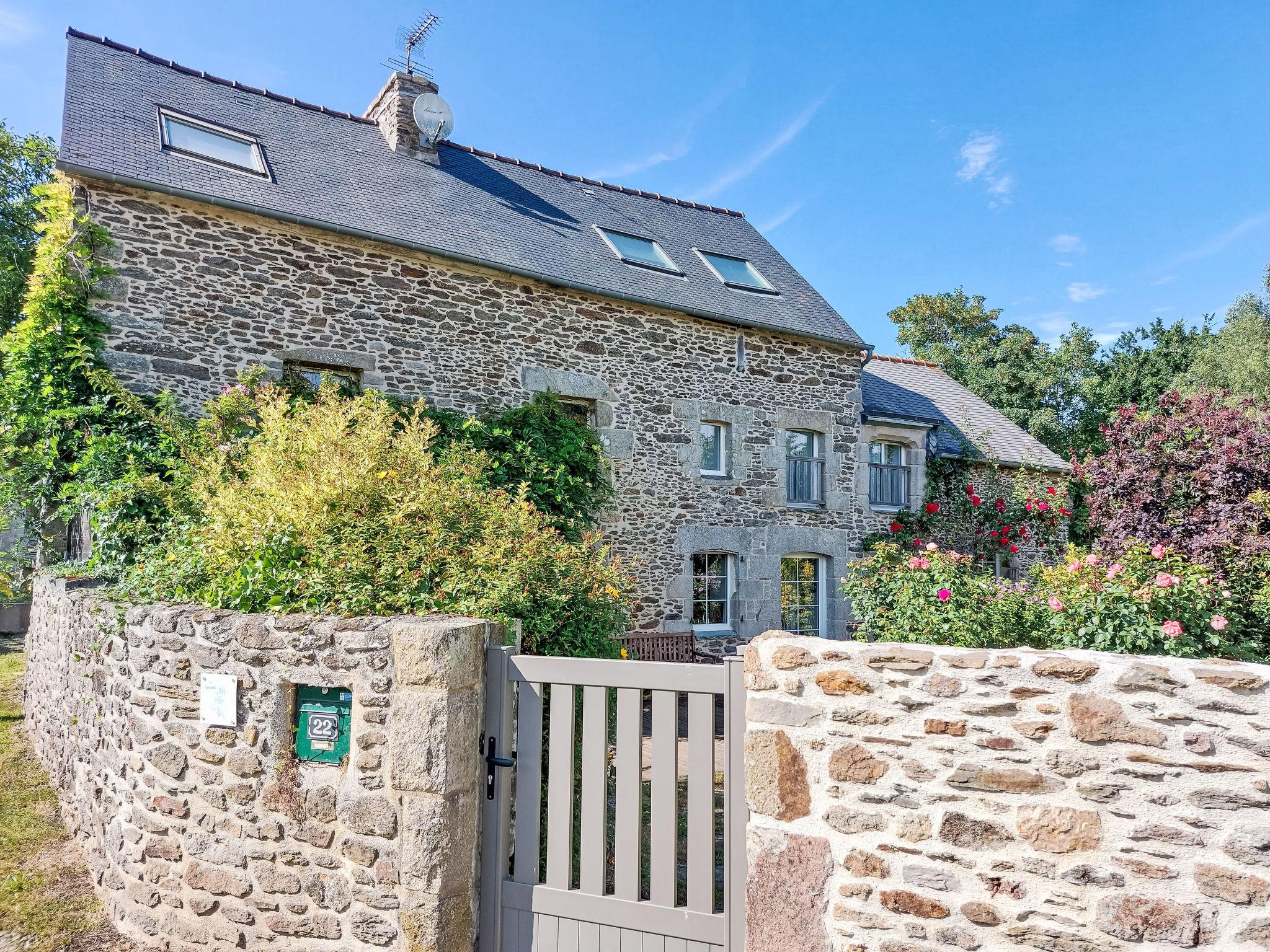 Languenan: Beautiful single-family house "Les Agapanthes", 2 storeys, surrounded by fields. Outside the resort, 2 km from the centre, 12 km from the sea, 12 km from the beach, in the countryside. Private: garden (not fenced) with lawn 1'500 m2 wildlife garden. Grocery 8 km, supermarket 8 km, shopping centre 8 km, restaurant 12 km, bus stop 2 km, sandy beach "Saint Jacut de la Mer" 12 km. Nearby attractions: Dinan 10 km, Vallée de la Rance, St Malo 27 km, Cap Fréhel 34 km, Mont St Michel 58 km. Please note: car recommended. Object suitable for 6 adults + 3 children.