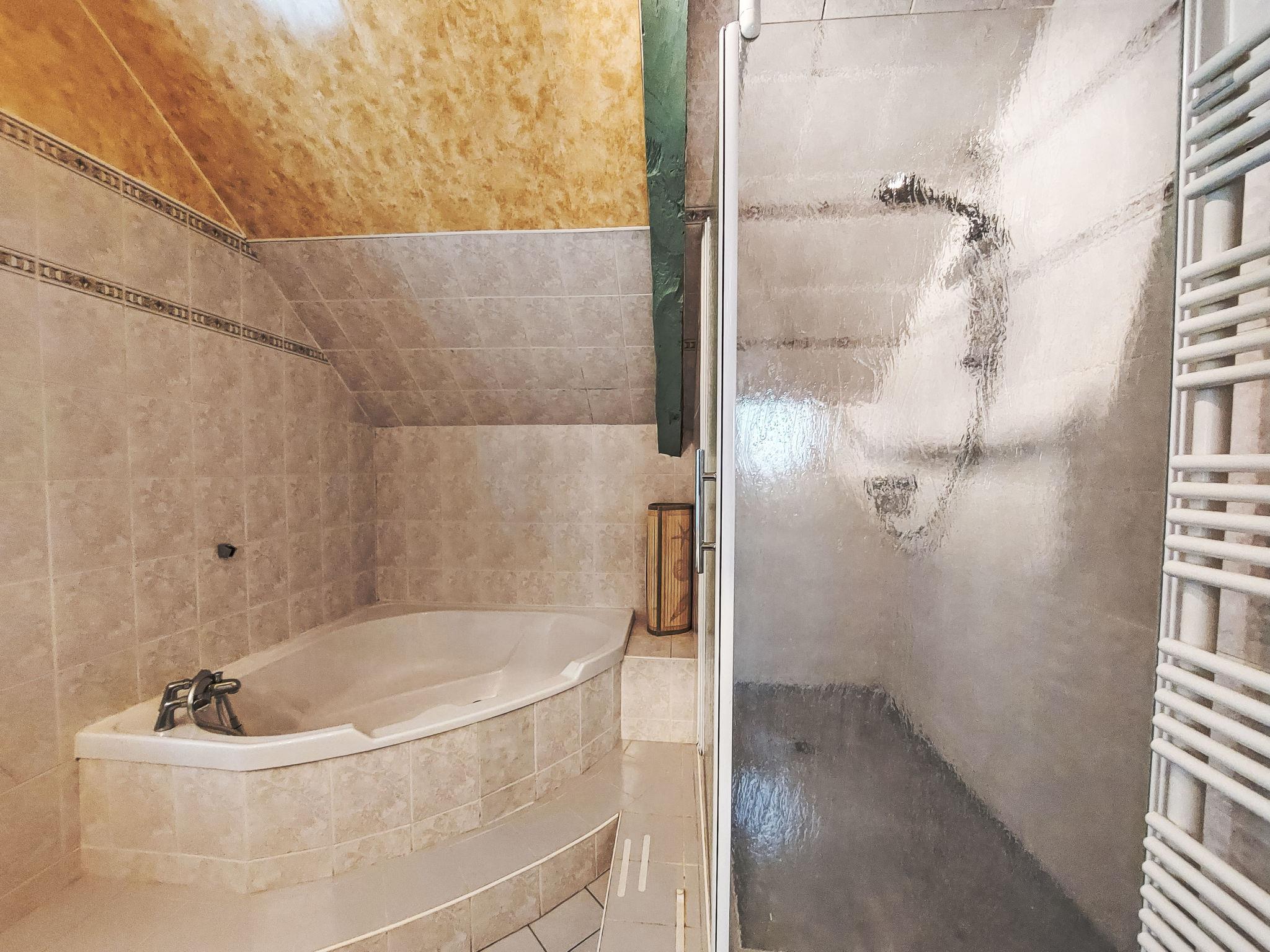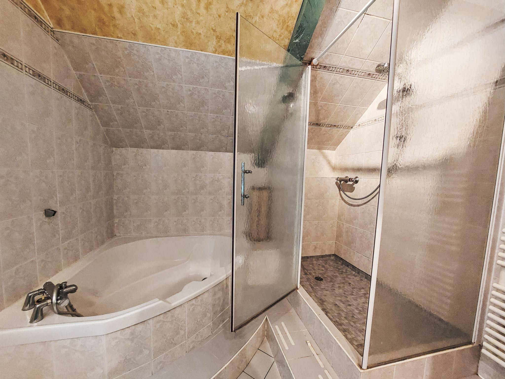 5-room house 150 m2 on 2 levels. Beautiful furnishings: large living/dining room 25 m2 with open-hearth fireplace, TV, hi-fi system and DVD. Exit to the terrace. Kitchen (oven, dishwasher, 4 gas rings, toaster, kettle, microwave, freezer, electric coffee machine, Capsules for coffee machine (Nespresso), cooking island). Exit to the garden, to the terrace. Shower, sep. WC. Electric heating. Upper floor: 1 children's room with 1 bed (90 cm), 1 pull-out bed (2 pers. 2 x 90 cm). 2 rooms, each room with 1 french bed (160 cm). Gallery with 2 beds (90 cm). Bath/shower, sep. WC with corner bath. Terrace 20 m2. Terrace furniture, barbecue, deck chairs (6), box-room. View of the garden. Facilities: washing machine, dryer, children's high chair, baby cot for up to 2 year olds. Internet (WiFi, free). Parking at the house. Please note: suitable for families. Non-smoking house. Maximum 1 pet/ dog allowed. Smoke alarm. From the single room and 1 sofa bed, access to the gallery with 2 beds, via stairs. Instead of an enclosed bedroom, some sleeping areas are located in an open-plan area (gallery, alcove, etc.).