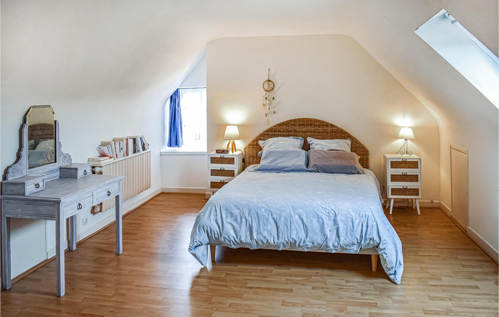Mellem Lannion og portene til Morlaix er dette charmerende stenhus typisk for regionen. Kom her og oplev dette ideelle sted at tilbringe en afslappende ferie. I kan finde jer godt tilpas på to niveauer og føle jer godt tilpas i det smagfuldt indrettede feriehus. Kom sammen i stuen og varm op om aftenen ved den knitrende åbne ild. Men I kan også arrangere fælles madlavningsaftener og tage på en kulinarisk rejse i regionen. Køkkenet åbner ud til udestuen, som er et skønt sted at slappe helt af.