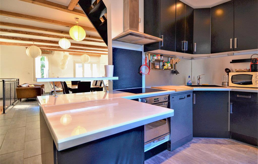 Glæd jer til dette indbydende og smagfulde feriehus, som er fordelt over to etager. Her er der gode rammer til at føle sig hjemme og give sig god tid til madlavningen i det veludstyrede køkken, nyde dagens måltider ved spisebordet og slappe af i sofaen om aftenen. Indkvarteringen er en sand oase, hvor I kan hvile jer, når I vender tilbage fra dagens udflugter.