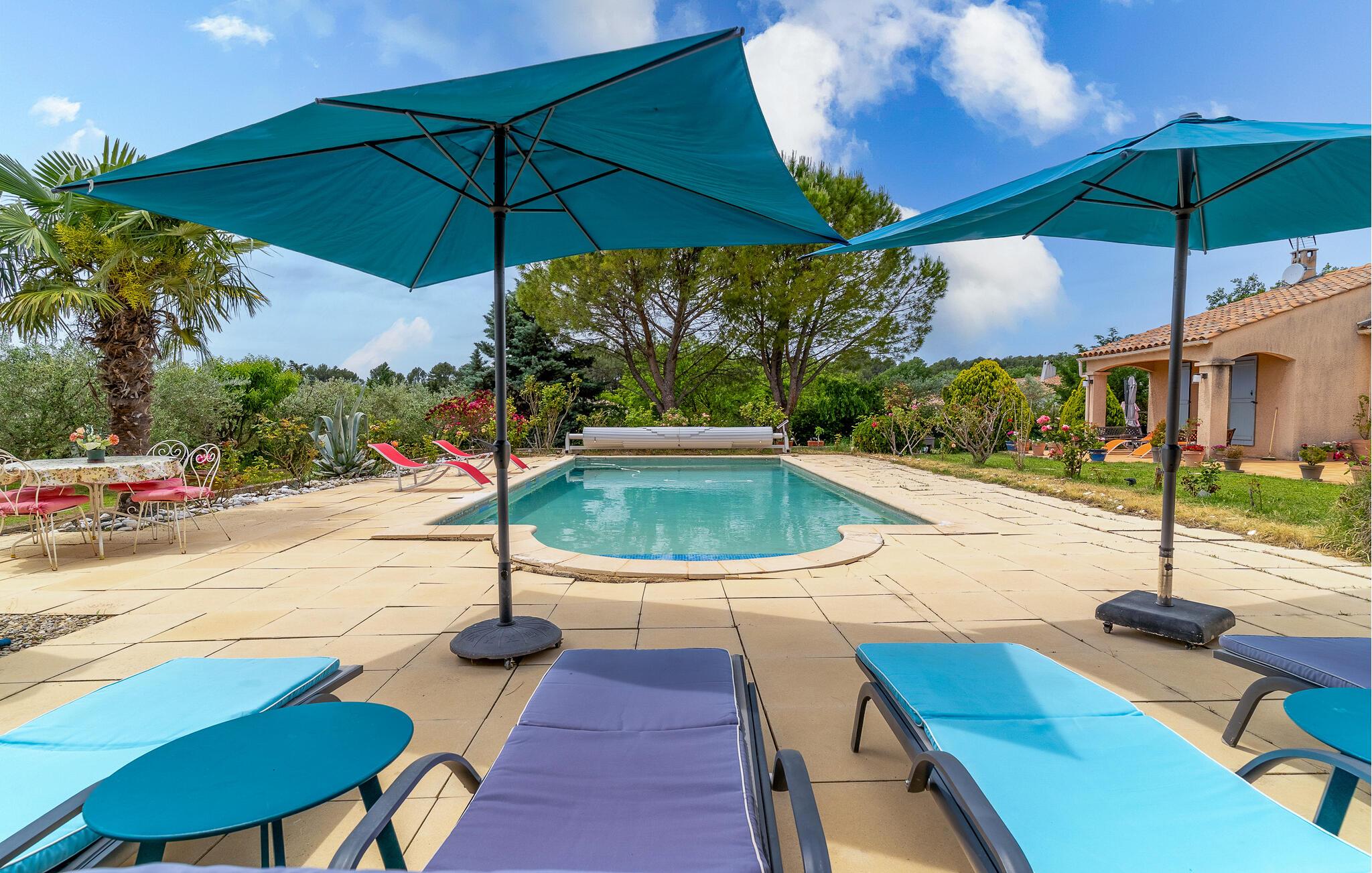 Kom og nyd udsigten fra terrassen til denne smukke ferielejlighed med privat pool i Luberon, i hjertet af Provence.