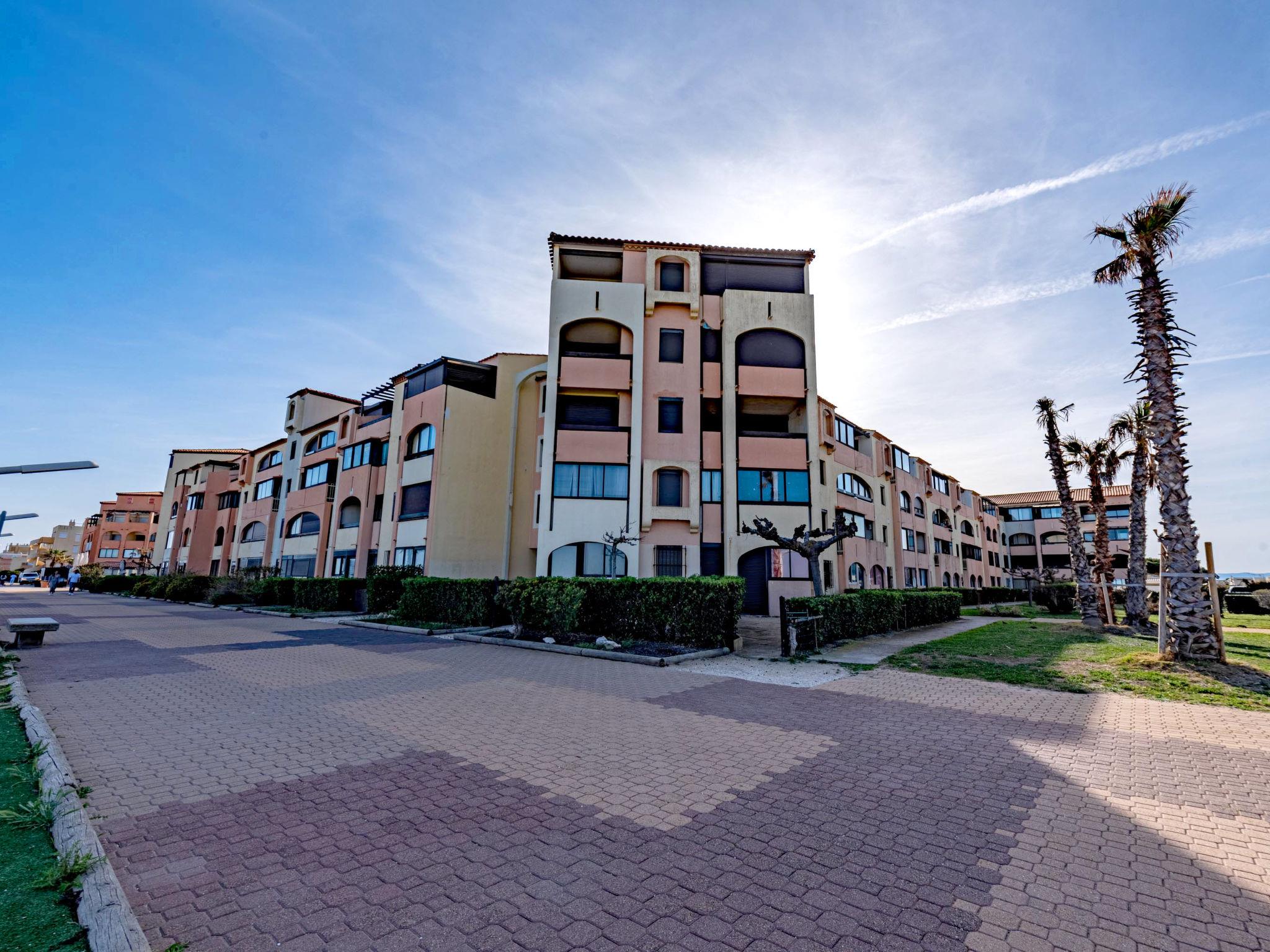 Residence "Front de Mer", 3 storeys. In the district of Grande Plage, in a busy position, 100 m from the sea, 100 m from the beach. In the complex: parking. Shop, grocery 50 m, supermarket 6 km, restaurant, bar, bakery, café 50 m, bus stop "Les Marines" 300 m, railway station "Perpignan" 24 km, sandy beach 50 m. Surf school 2 km, sailing school 3 km, tennis 3 km, indoor tennis centre 3 km, minigolf 2.5 km, riding stable 12 km. Nearby attractions: Aqualand Port Leucate 7 km, Réserve Africaine de Sigean 41 km, cinéma 1.2 km, téléski nautique 5 km, parcours aventure 5 km, Spot de windsurf 4 km. Well-known lakes can easily be reached: Etang de Leucate ou salses 3 km, Lac de Villeneuve de la Raho 34 km. Hiking paths: Sentier du guetteur 8 km, la forteresse de salses 15 km, Sentier du littoral Collioure 40 km. Please note: no lift. Entertainment in the season. The photograph shows a typical example. Additional accommodations can be booked.