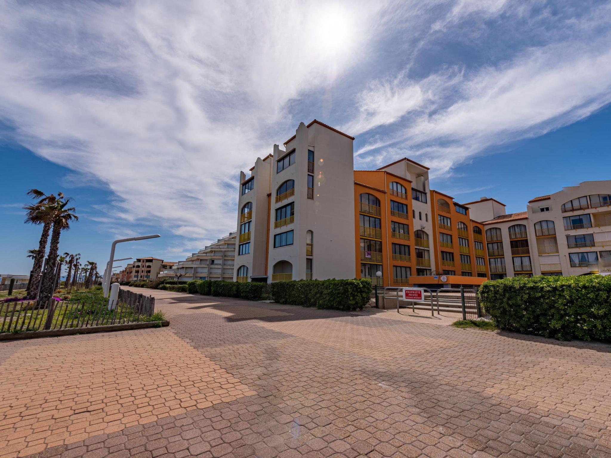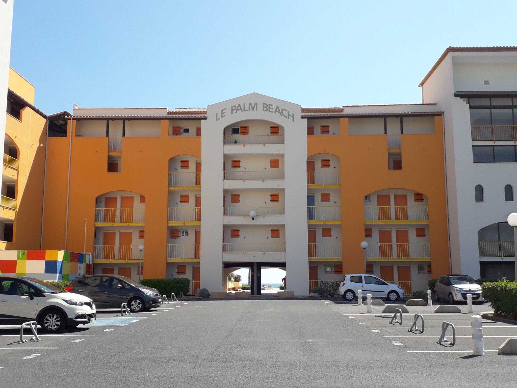 Residence "Palm Beach", 3 storeys. 300 apartments in the residence. In the district of La Grande Plage, 100 m from the sea, 100 m from the beach. Public parking 150 m. Shop, grocery, shopping centre, restaurant, bar, café, bicycle rental 150 m, bus stop "Les Marines" 650 m, railway station "de la Franqui" 15 km. Sports harbour 4 km. Nearby attractions: Aqualand Port Leucate 2 km, Réserve Africaine de Sigean 41 km, site des dosses 4 km, téléski nautique 5 km. Well-known lakes can easily be reached: Etang de Leucate ou salses 8 km, Lac de Villeneuve de la Raho 28 km. Hiking paths: Sentier du guetteur 8 km, la forteresse de salses 15 km, Sentier du littoral Collioure 40 km. Please note: Additional accommodations can be booked.