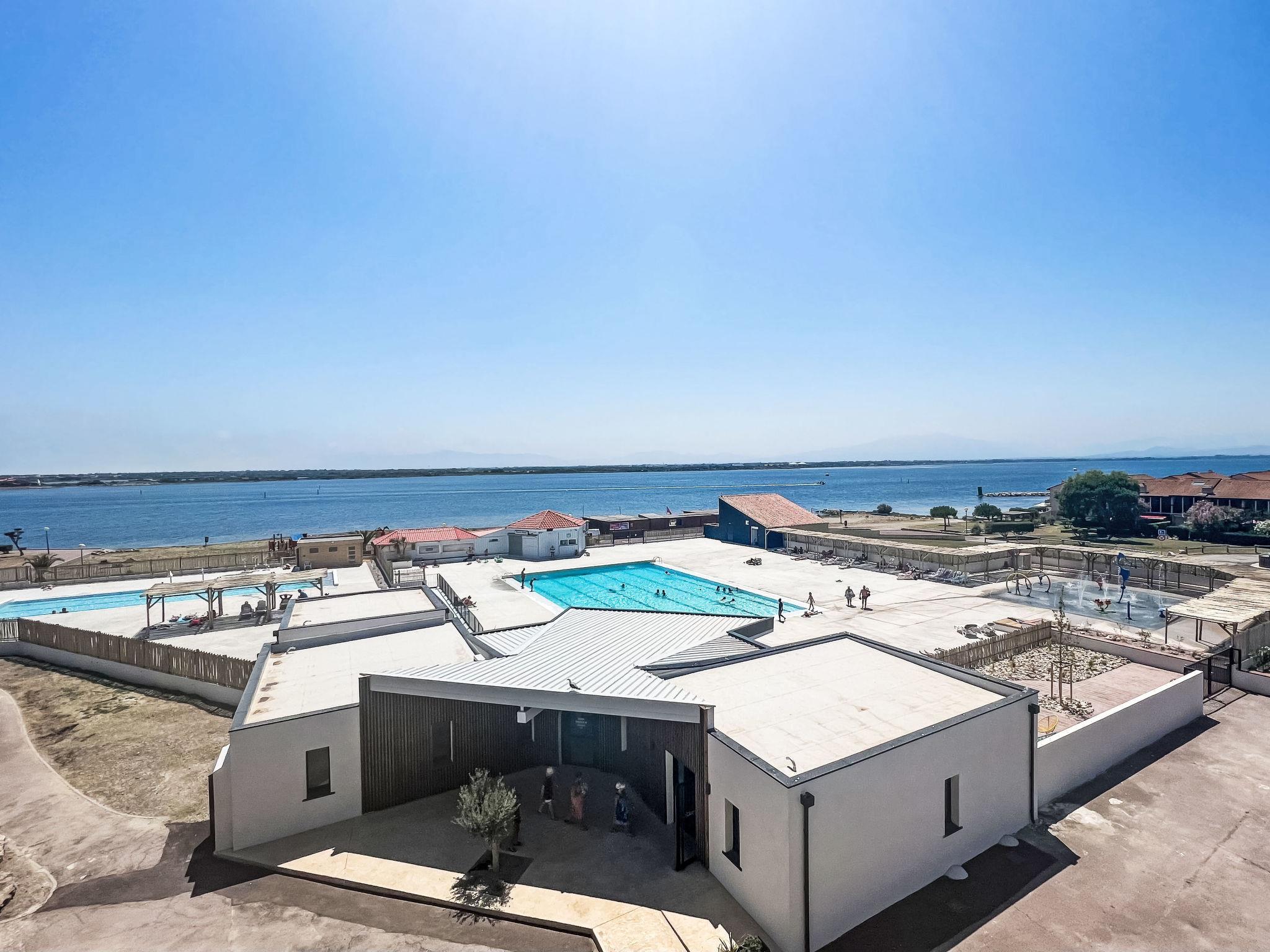 La Coudalère 5 km from Barcarès centre: As part of the water restriction measures linked to drought in some of our departments, please note that the rental swimming pool may be closed by prefectural decree. Residence "Palmyra", 2 storeys. 2.8 km from the sea, 50 m from the lake, 2.8 km from the beach. For shared use: natural pond, 2 swimming pools heated (10 x 15 m, seasonal availability: 15.Apr. - 15.Oct.). Children's pool, tennis (extra), basketball (extra), children's playground (slide), parking. Shop, grocery 400 m, supermarket 6 km, restaurant, bar, bakery, café, bicycle rental 400 m, bus stop "La Coudalère" 950 m, railway station "Perpignan" 22 km, sandy beach 2.5 km, diving center 3.5 km. Sailing school 400 m, minigolf 1.3 km, riding stable 12 km, cycle lane 5 km. Nearby attractions: Réserve Africaine de Sigean 41 km, Aqualand Port Leucate 7 km, parcours aventure 7 km, téléski nautique site des dosses 5 km, Spot de windsurf 20 m, Cinéma 5 km. Well-known lakes can easily be reached: Lac de villeneuve de la Raho 34 km. Hiking paths: Sentier du guetteur 8 km, La forteresse de Salses 15 km, Sentier du littoral Collioure 40 km. Please note: car recommended, no lift. Entertainment in the season. The keys‘ handover takes place by the agency -------- Barcares 3 km. The apartment is located in a zone with limited traffic. The photograph shows a typical example. Additional accommodations can be booked.
