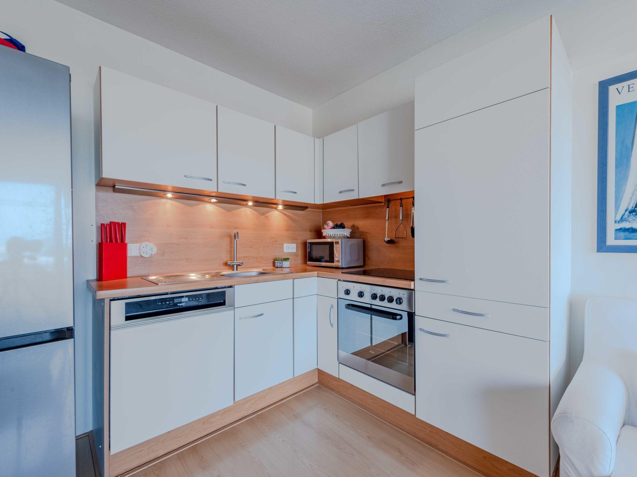 3-room apartment 32 m2, on the ground floor, south facing position. Living/dining room with TV (flat screen). Exit to the terrace. 1 room with 2 beds (90 cm, length 190 cm). 1 room with 1 x 2 bunk beds (80 cm, length 190 cm). (oven, dishwasher, 4 ceramic glass hob hotplates, microwave, freezer, electric coffee machine). Shower/WC. Air-conditioning. Terrace 23 m2. Terrace furniture, electric barbecue. Beautiful view of the lake, the mountains and the port. Facilities: washing machine. Internet (WiFi, extra). Parking. Please note: smoke alarm. Offer by a private individual according to Art. 155, IV of CGI.
