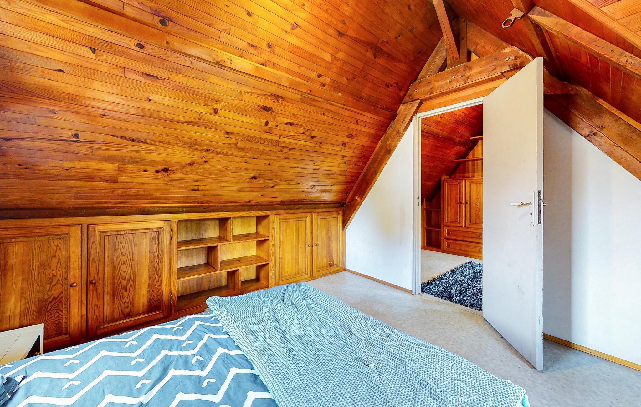 Oplev en uforglemmelig ferie i dette bretonske stenhus i Le Faouët. Interiøret udstråler en rustik hygge takket være den store brændeovn, fritlagte stenvægge og det åbne galleri soveværelse. Træstemningen med synlige bjælker og varme toner skaber en hyggelig atmosfære, der lægger op til at slappe af.