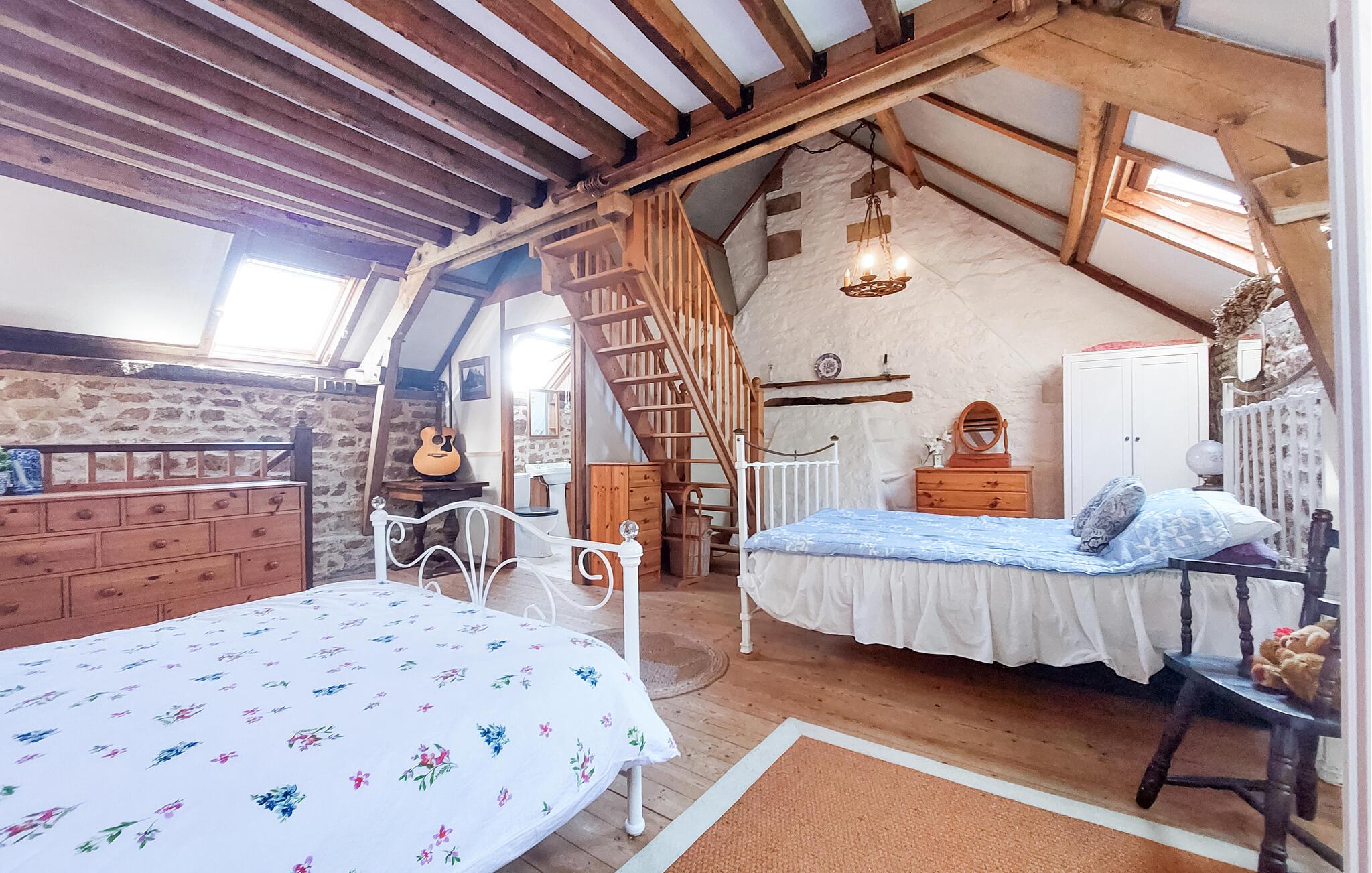 Ren ferieafslapning venter jer i dette charmerende stenhus, der ligger ideelt som udgangspunkt for at udforske Bretagne. Gør det behageligt sammen med familien i de indbydende rum og brug huset som funktionel base for spændende udflugter i området. Vend tilbage om aftenen og nyd hyggelige stunder i stuen.