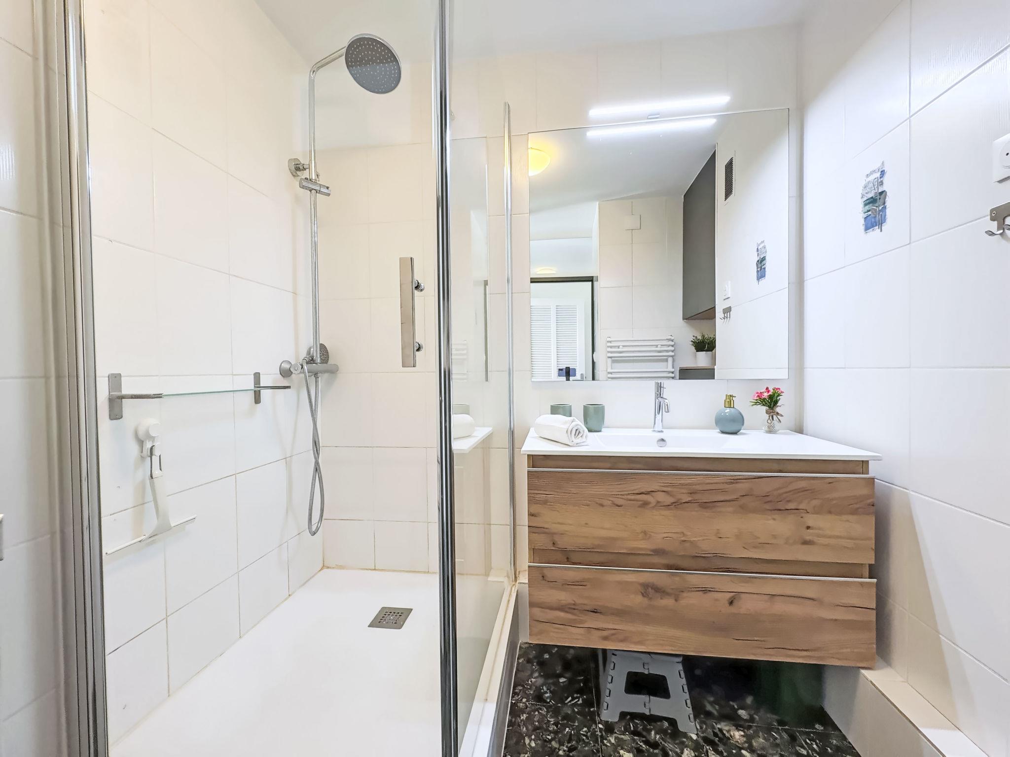 "Le Mireille", 3-room apartment 60 m2 on 4th floor. Beautiful furnishings: living/dining room with TV. 1 room with 1 french bed (160 cm, length 190 cm). 1 room with 1 bed (90 cm, length 190 cm), 1 pull-out bed (2 pers. 2 x 90 cm, length 200 cm). Kitchen (oven, 4 ceramic glass hob hotplates, toaster, kettle, microwave, freezer, electric coffee machine). Shower, sep. WC. Gas heating. Terrace 9 m2, south-west facing position. Terrace furniture. Beautiful view of the sea. Facilities: washing machine. Internet (WiFi, free). Parking space n 258. Please note: smoke alarm. Offer by a private individual according to Art. 155, IV of CGI.