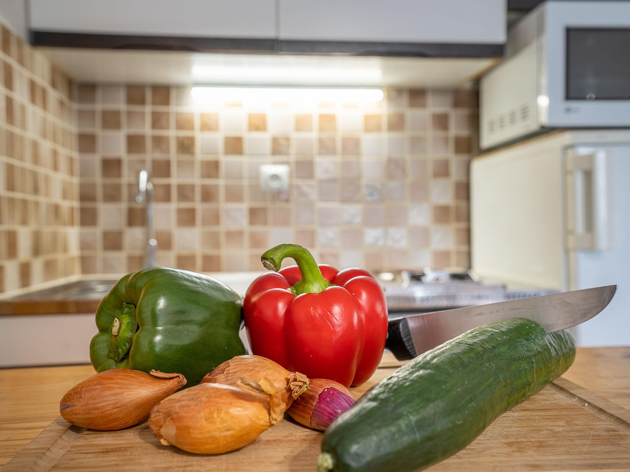 2-room apartment 28 m2, on the ground floor. Living/dining room with 1 double sofabed (140 cm, length 190 cm), TV and fan. 1 room 9 m2, without window with 1 french bed (140 cm, length 190 cm), 1 sleeping facility (90 cm, length 180 cm). Kitchenette (2 hot plates, combination microwave). Shower/WC. Electric heating. Terrace 12 m2, east facing position. Terrace furniture. Facilities: washing machine. Internet (WiFi, extra). Garage, height 227 cm, width 310 cm. Please note: maximum 1 pet/ dog allowed. Smoke alarm. The bedroom window opens on to the garage.