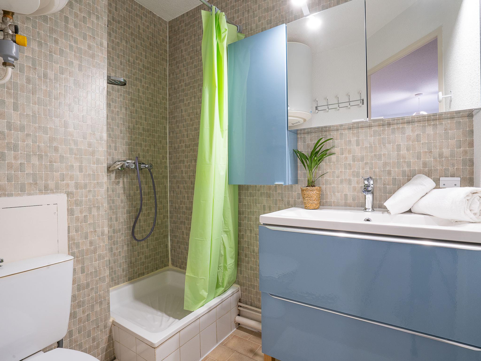 2-room apartment 22 m2 on 2nd floor. Living/dining room with 1 double sofabed (140 cm, length 190 cm), TV (flat screen). Exit to the terrace. 1 small room with 1 french bed (140 cm, length 190 cm). Kitchenette (2 hot plates, mini-oven). Shower/WC. Terrace 9 m2, north-west facing position. Terrace furniture. View of the swimming pool. Facilities: Internet (WiFi, extra). Please note: maximum 1 pet/ dog allowed. Smoke alarm.
